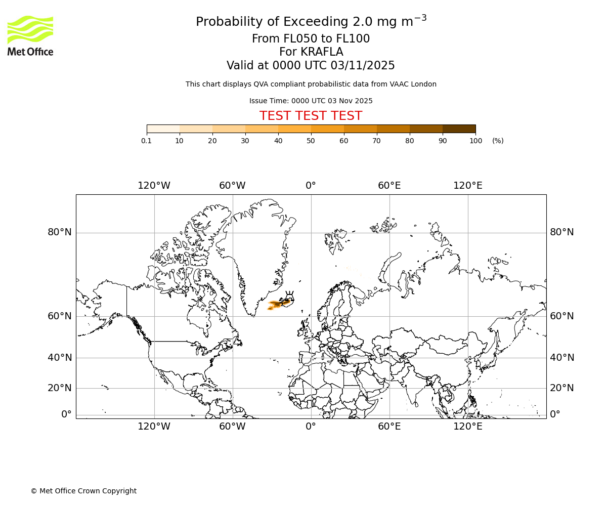 In accordance with ICAO Annex 3, Amendment 82 VAAC London will provide operational QVA forecasts from 27 November 2025 and these will be made available via a VAAC London QVA API information service. These charts are currently provided for test and evaluation purposes (not for operational use) until the introduction of the operational service.