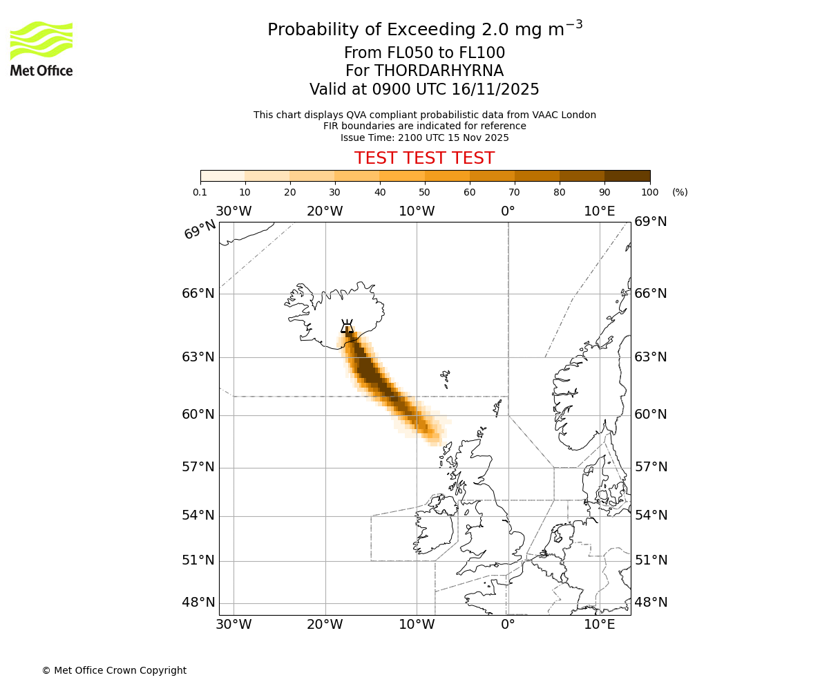 In accordance with ICAO Annex 3, Amendment 82 VAAC London will provide operational QVA forecasts from 27 November 2025 and these will be made available via a VAAC London QVA API information service. These charts are currently provided for test and evaluation purposes (not for operational use) until the introduction of the operational service.