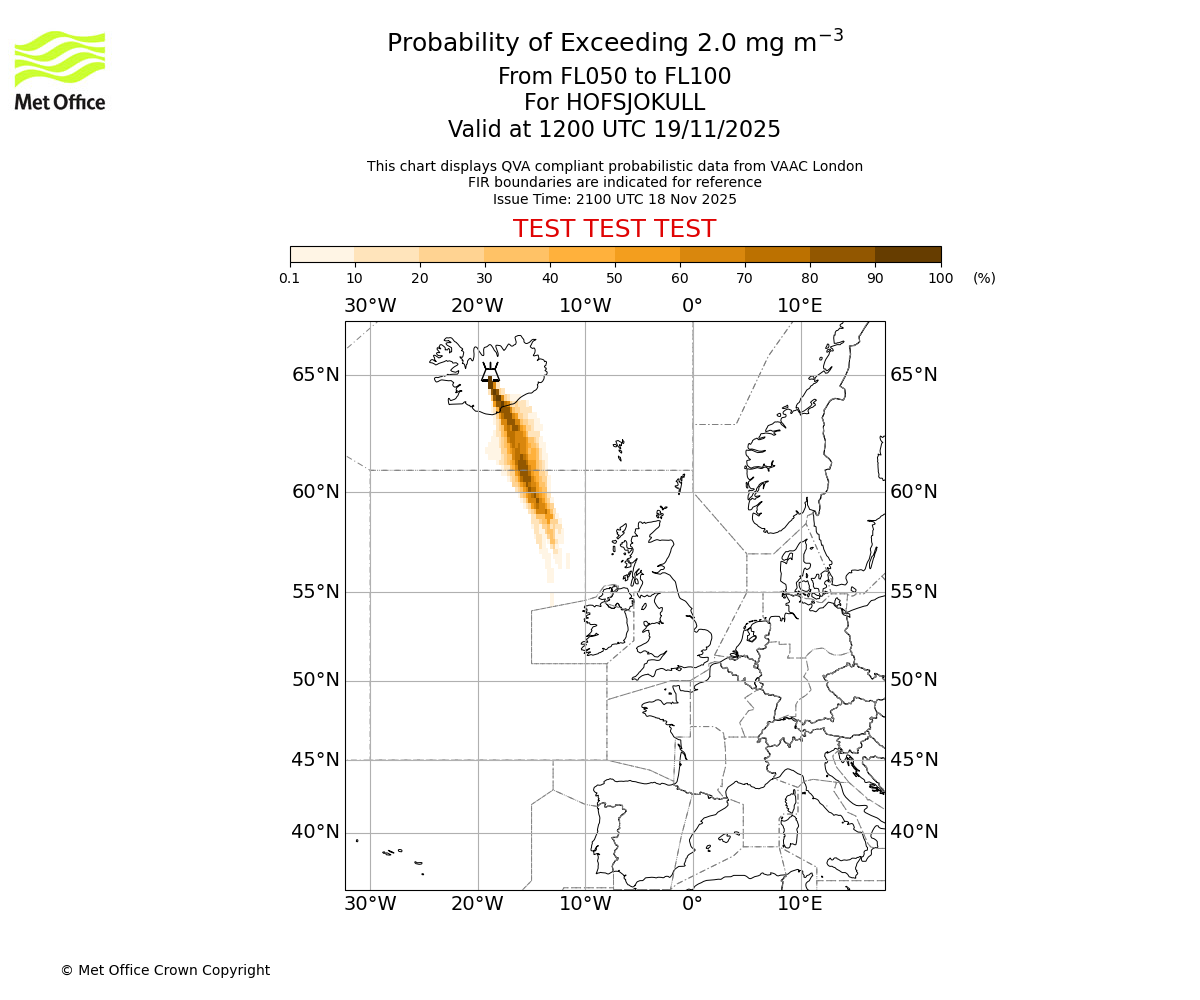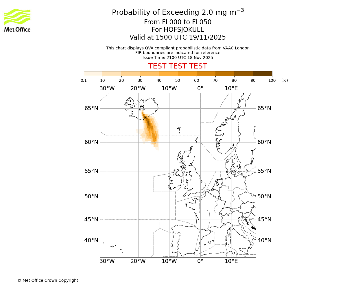 In accordance with ICAO Annex 3, Amendment 82 VAAC London will provide operational QVA forecasts from 27 November 2025 and these will be made available via a VAAC London QVA API information service. These charts are currently provided for test and evaluation purposes (not for operational use) until the introduction of the operational service.