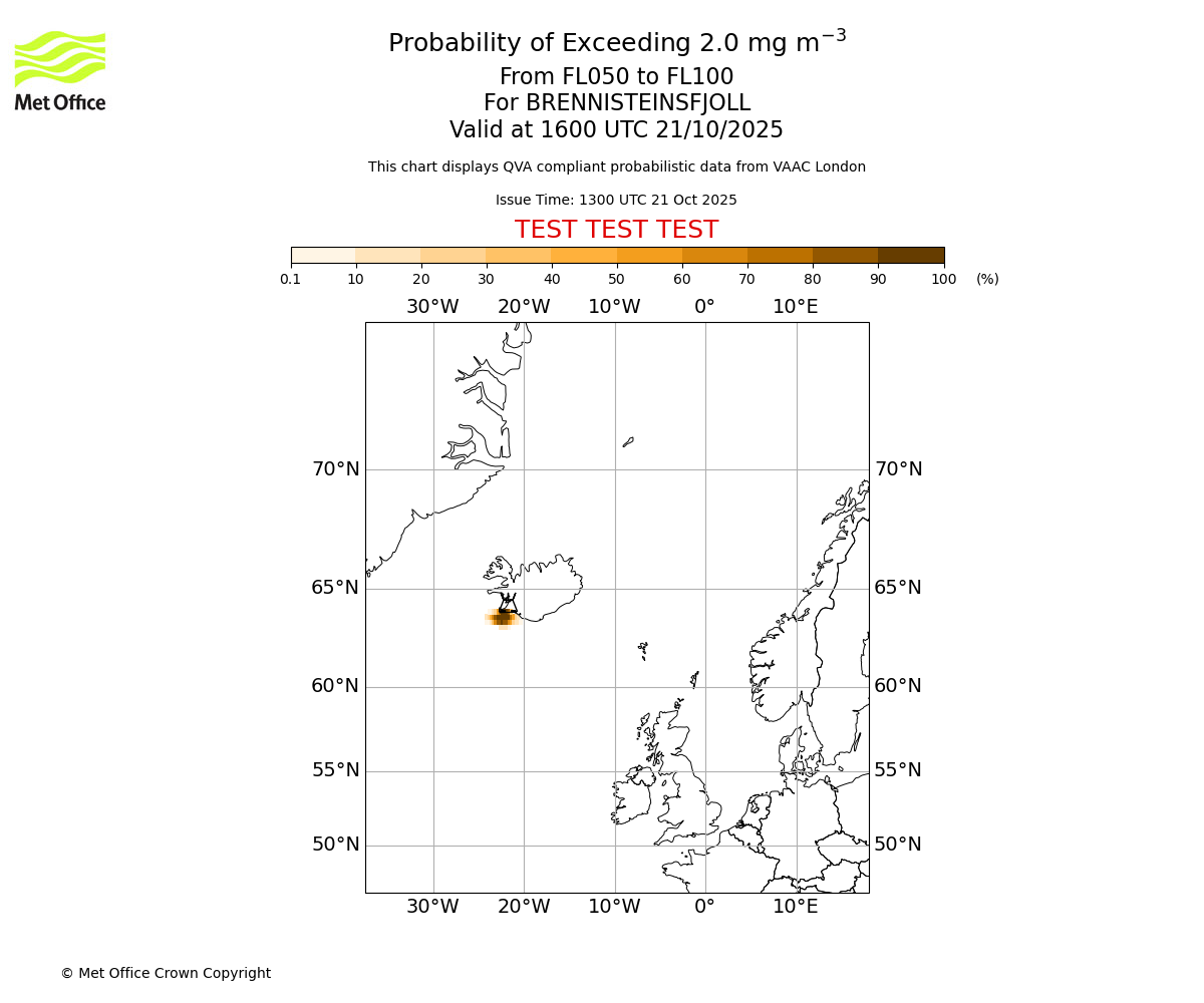 In accordance with ICAO Annex 3, Amendment 82 VAAC London will provide operational QVA forecasts from 27 November 2025 and these will be made available via a VAAC London QVA API information service. These charts are currently provided for test and evaluation purposes (not for operational use) until the introduction of the operational service.