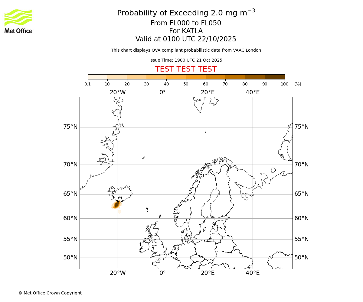 In accordance with ICAO Annex 3, Amendment 82 VAAC London will provide operational QVA forecasts from 27 November 2025 and these will be made available via a VAAC London QVA API information service. These charts are currently provided for test and evaluation purposes (not for operational use) until the introduction of the operational service.