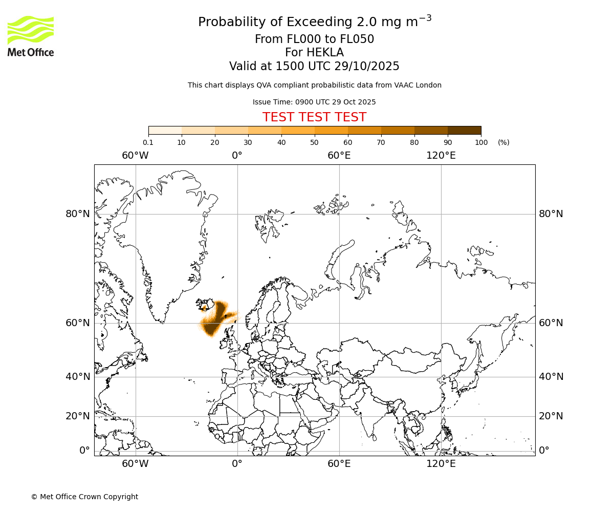 In accordance with ICAO Annex 3, Amendment 82 VAAC London will provide operational QVA forecasts from 27 November 2025 and these will be made available via a VAAC London QVA API information service. These charts are currently provided for test and evaluation purposes (not for operational use) until the introduction of the operational service.