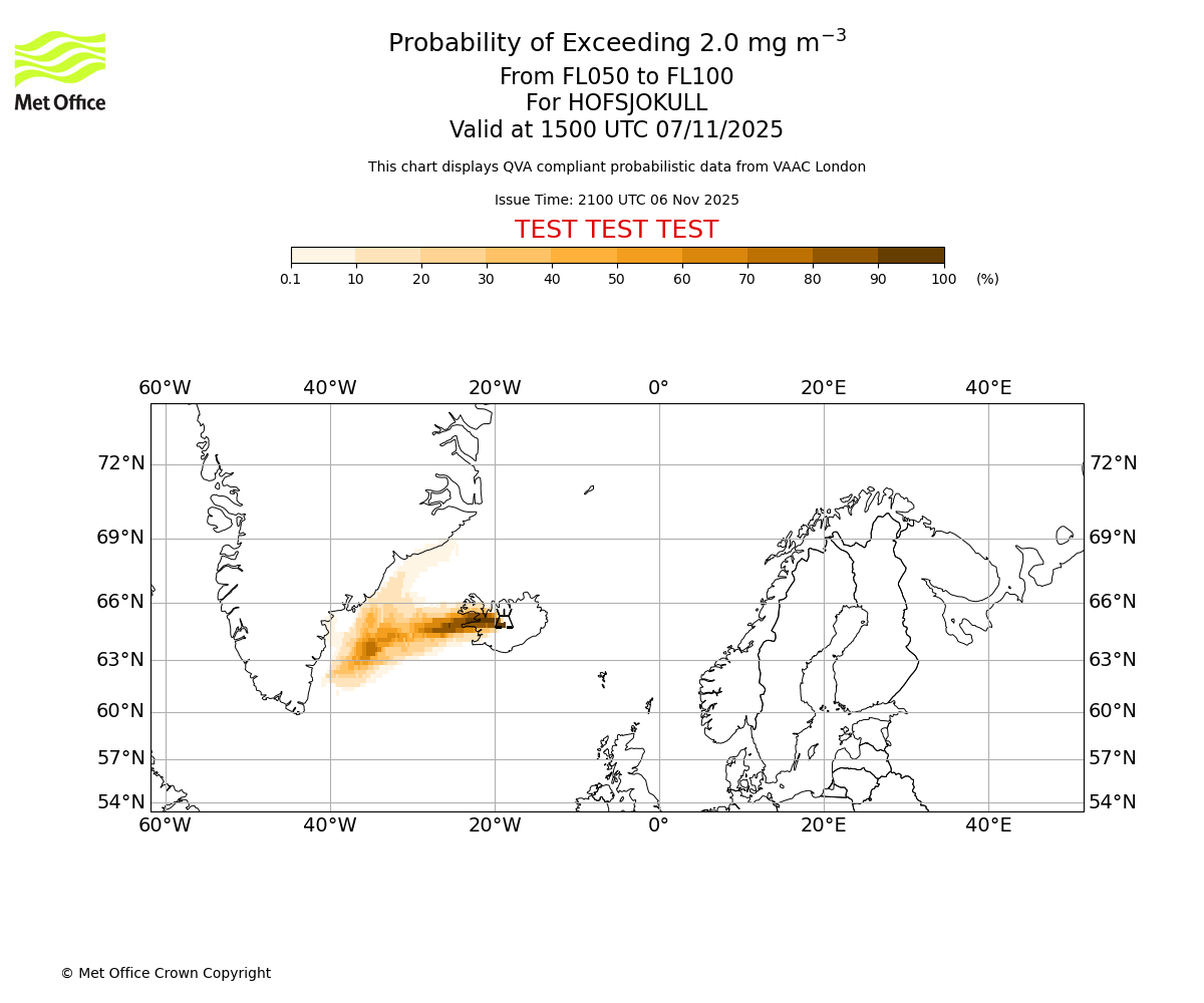 In accordance with ICAO Annex 3, Amendment 82 VAAC London will provide operational QVA forecasts from 27 November 2025 and these will be made available via a VAAC London QVA API information service. These charts are currently provided for test and evaluation purposes (not for operational use) until the introduction of the operational service.
