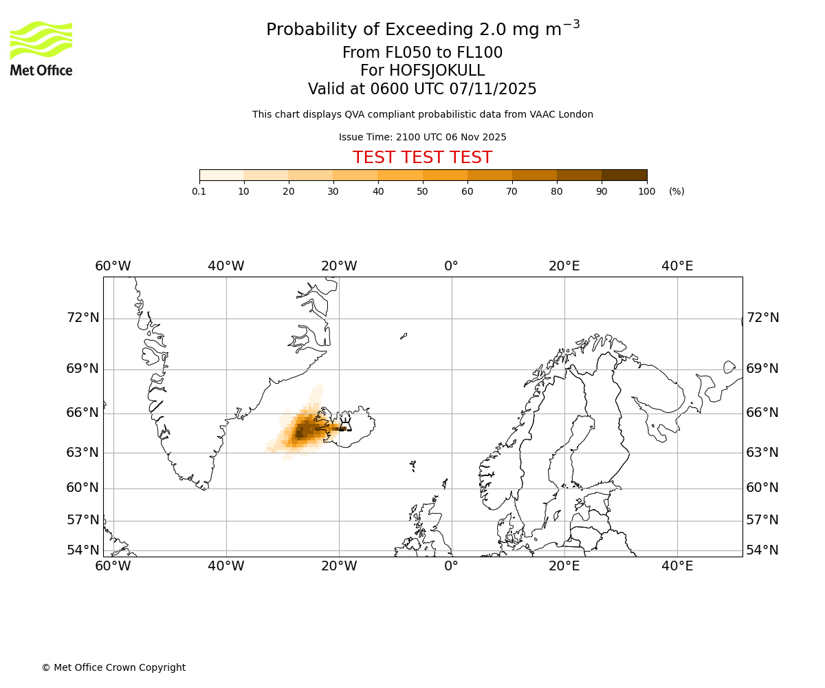In accordance with ICAO Annex 3, Amendment 82 VAAC London will provide operational QVA forecasts from 27 November 2025 and these will be made available via a VAAC London QVA API information service. These charts are currently provided for test and evaluation purposes (not for operational use) until the introduction of the operational service.
