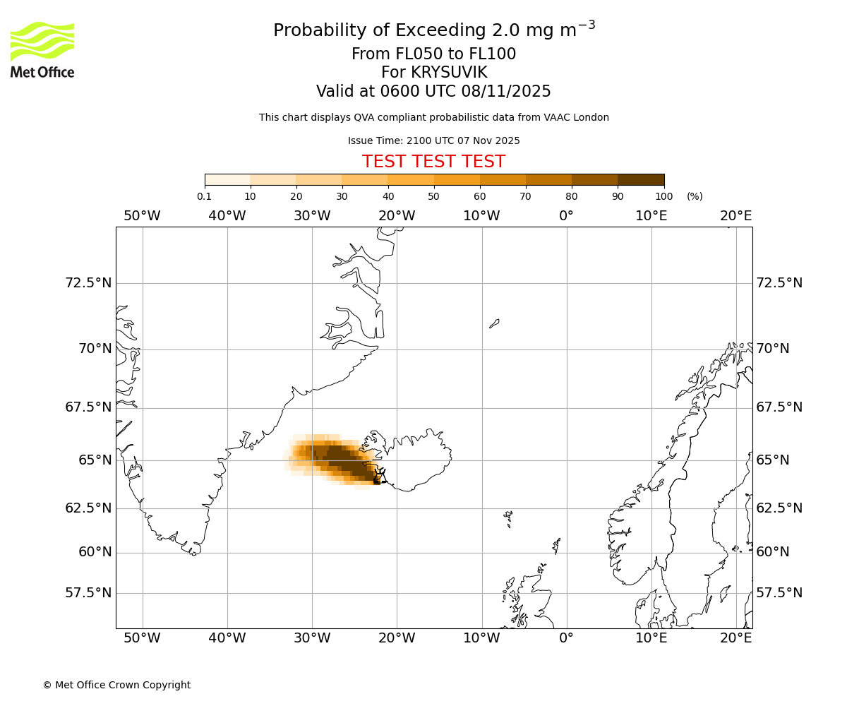 In accordance with ICAO Annex 3, Amendment 82 VAAC London will provide operational QVA forecasts from 27 November 2025 and these will be made available via a VAAC London QVA API information service. These charts are currently provided for test and evaluation purposes (not for operational use) until the introduction of the operational service.