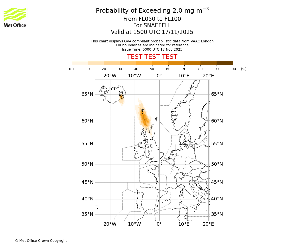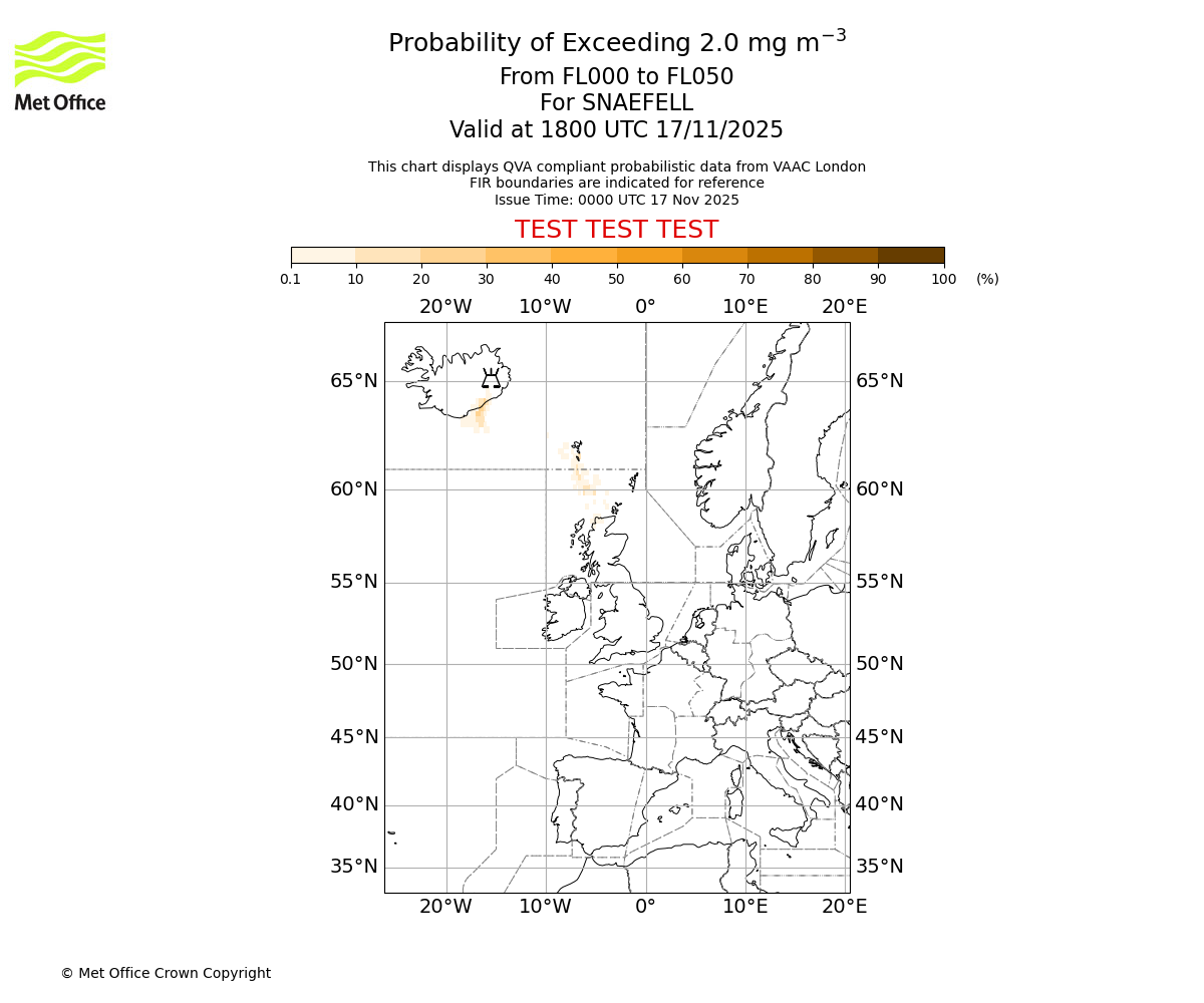 In accordance with ICAO Annex 3, Amendment 82 VAAC London will provide operational QVA forecasts from 27 November 2025 and these will be made available via a VAAC London QVA API information service. These charts are currently provided for test and evaluation purposes (not for operational use) until the introduction of the operational service.