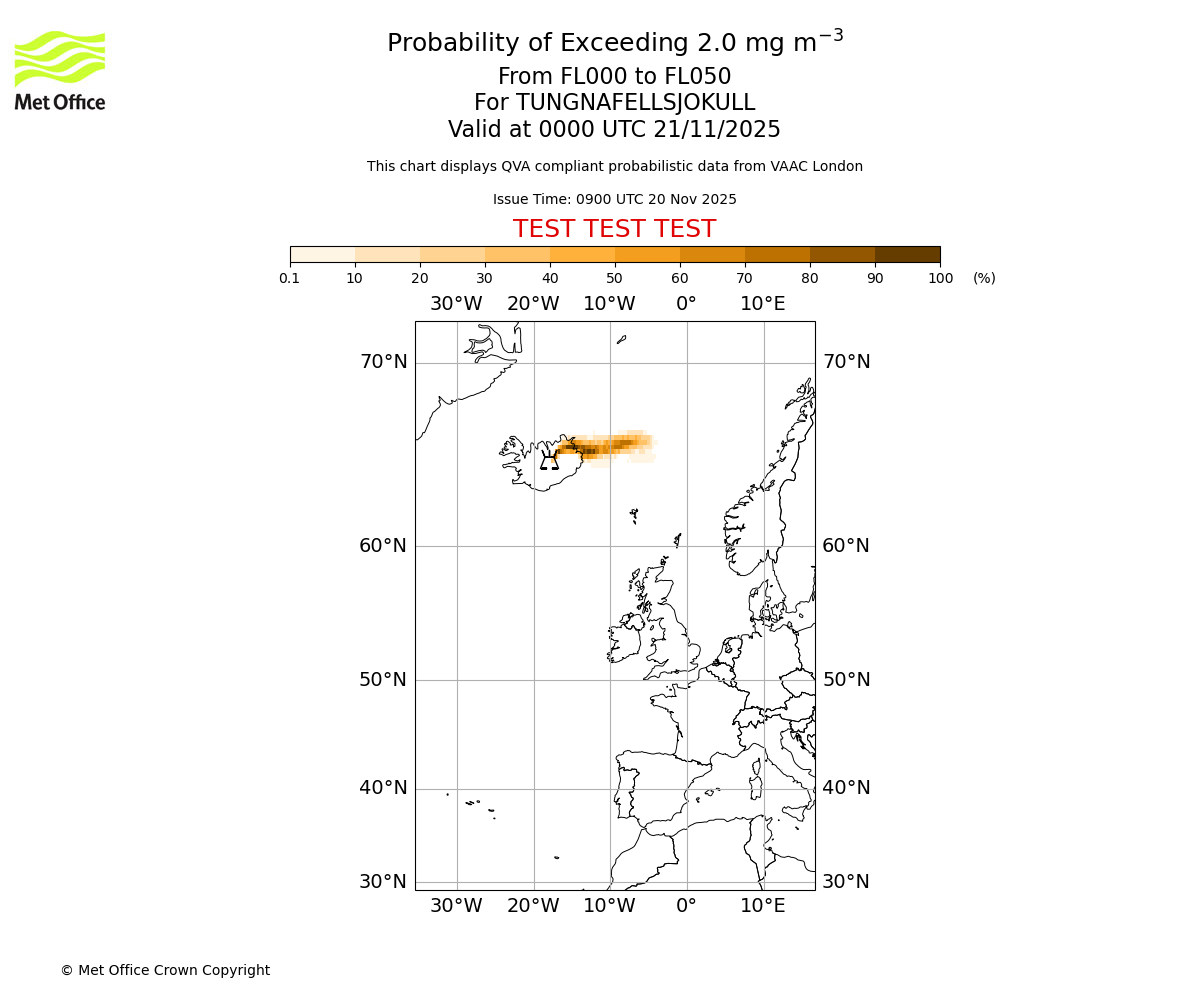 In accordance with ICAO Annex 3, Amendment 82 VAAC London will provide operational QVA forecasts from 27 November 2025 and these will be made available via a VAAC London QVA API information service. These charts are currently provided for test and evaluation purposes (not for operational use) until the introduction of the operational service.