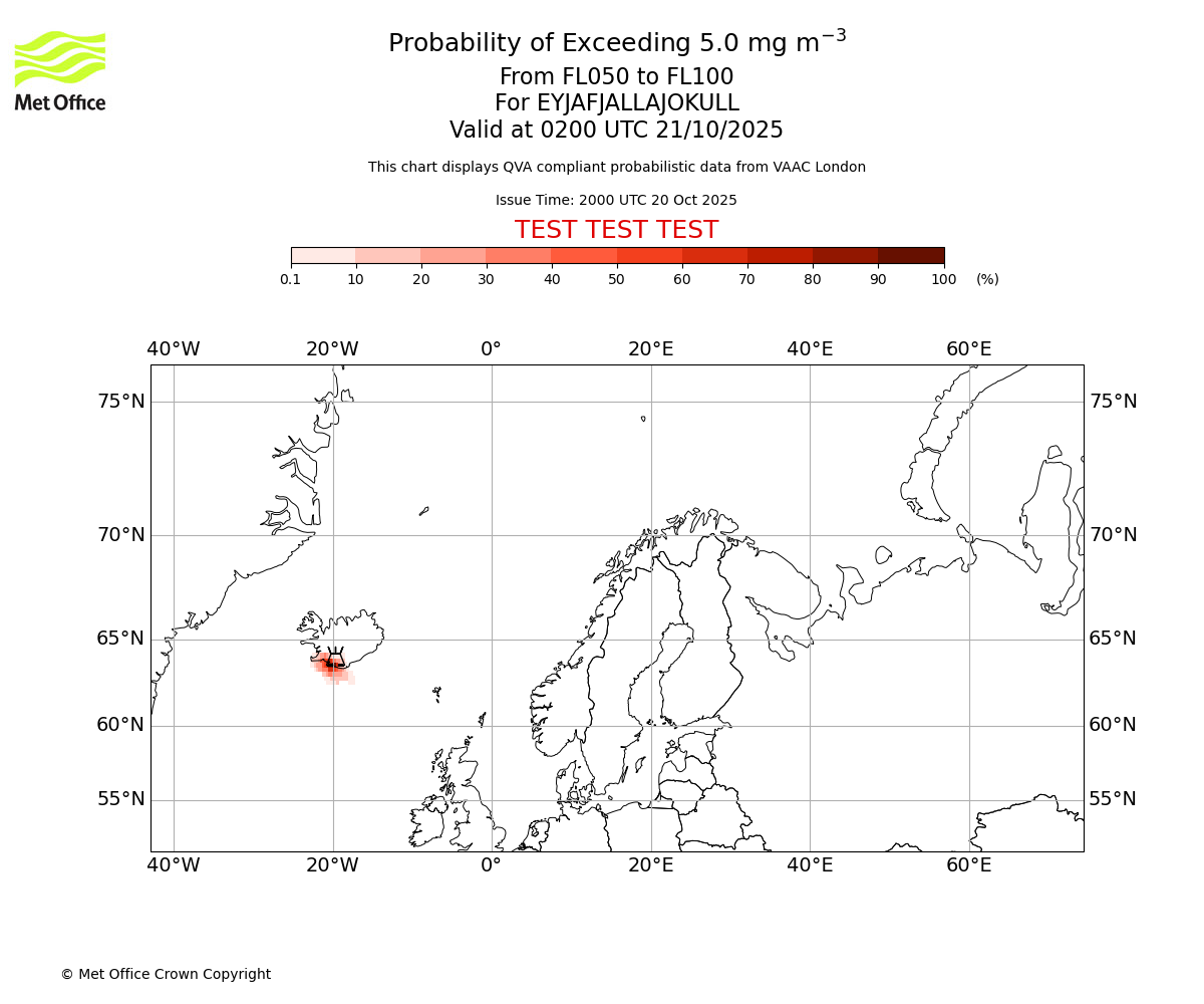 In accordance with ICAO Annex 3, Amendment 82 VAAC London will provide operational QVA forecasts from 27 November 2025 and these will be made available via a VAAC London QVA API information service. These charts are currently provided for test and evaluation purposes (not for operational use) until the introduction of the operational service.