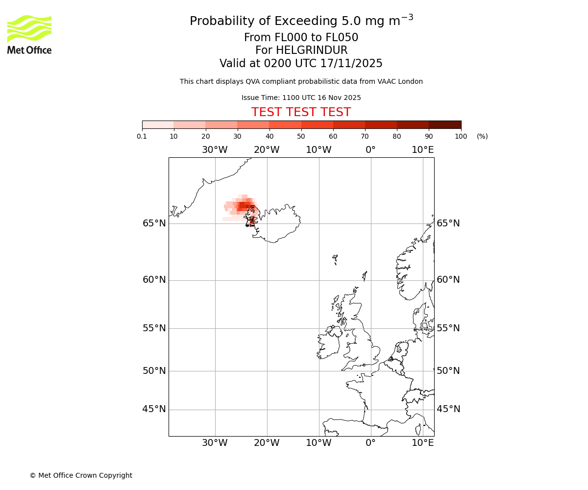In accordance with ICAO Annex 3, Amendment 82 VAAC London will provide operational QVA forecasts from 27 November 2025 and these will be made available via a VAAC London QVA API information service. These charts are currently provided for test and evaluation purposes (not for operational use) until the introduction of the operational service.