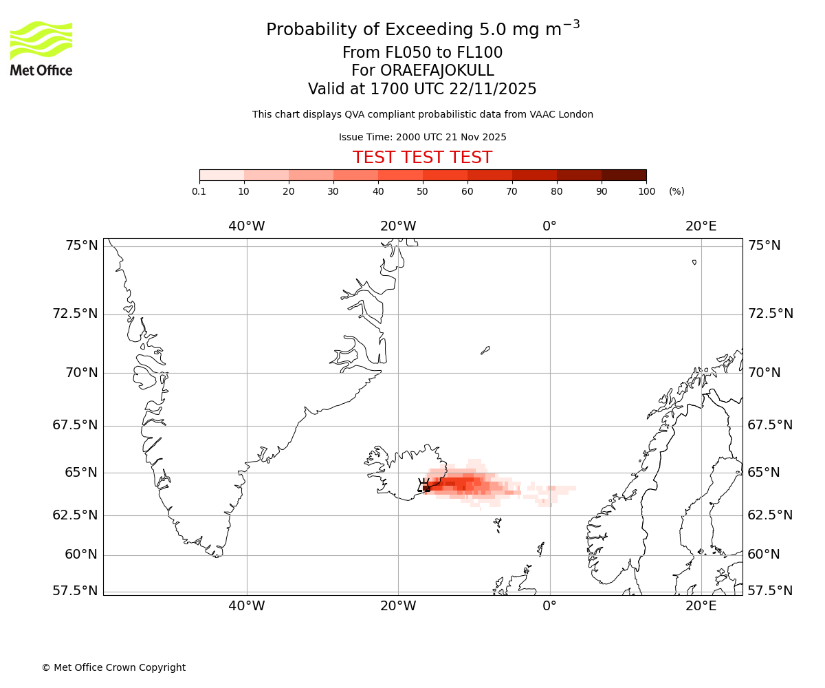 In accordance with ICAO Annex 3, Amendment 82 VAAC London will provide operational QVA forecasts from 27 November 2025 and these will be made available via a VAAC London QVA API information service. These charts are currently provided for test and evaluation purposes (not for operational use) until the introduction of the operational service.