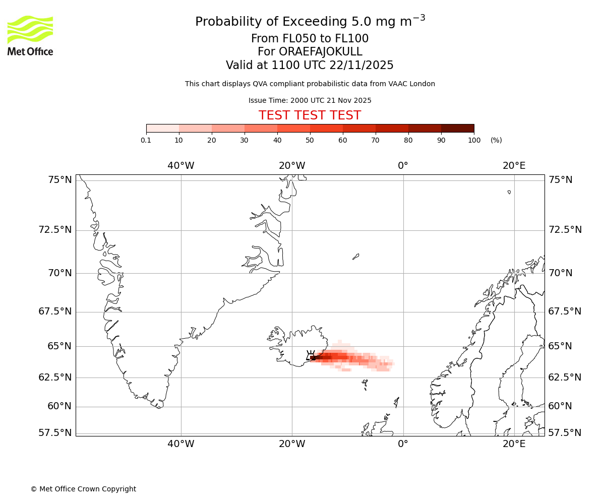 In accordance with ICAO Annex 3, Amendment 82 VAAC London will provide operational QVA forecasts from 27 November 2025 and these will be made available via a VAAC London QVA API information service. These charts are currently provided for test and evaluation purposes (not for operational use) until the introduction of the operational service.