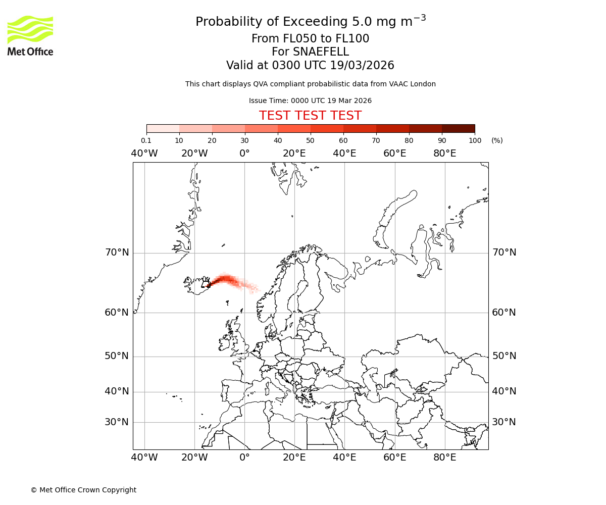 Quantitative Volcanic Ash charts (QVA) are produced in accordance with International Civil Aviation Organization (ICAO) Annex 3 requirements and are provided as well as the London Volcanic Ash Advisory Graphics (VAG) and Advisories (VAA). The lowest QVA threshold (0.2 mg/m³) matches to the areas depicted in the VAA and VAG. Both expected ash concentration and probabilistic forecast information is provided in the chart viewer below for eruptions occurring in the London Volcanic Ash Advisory Centre (VAAC) area of responsibility.
