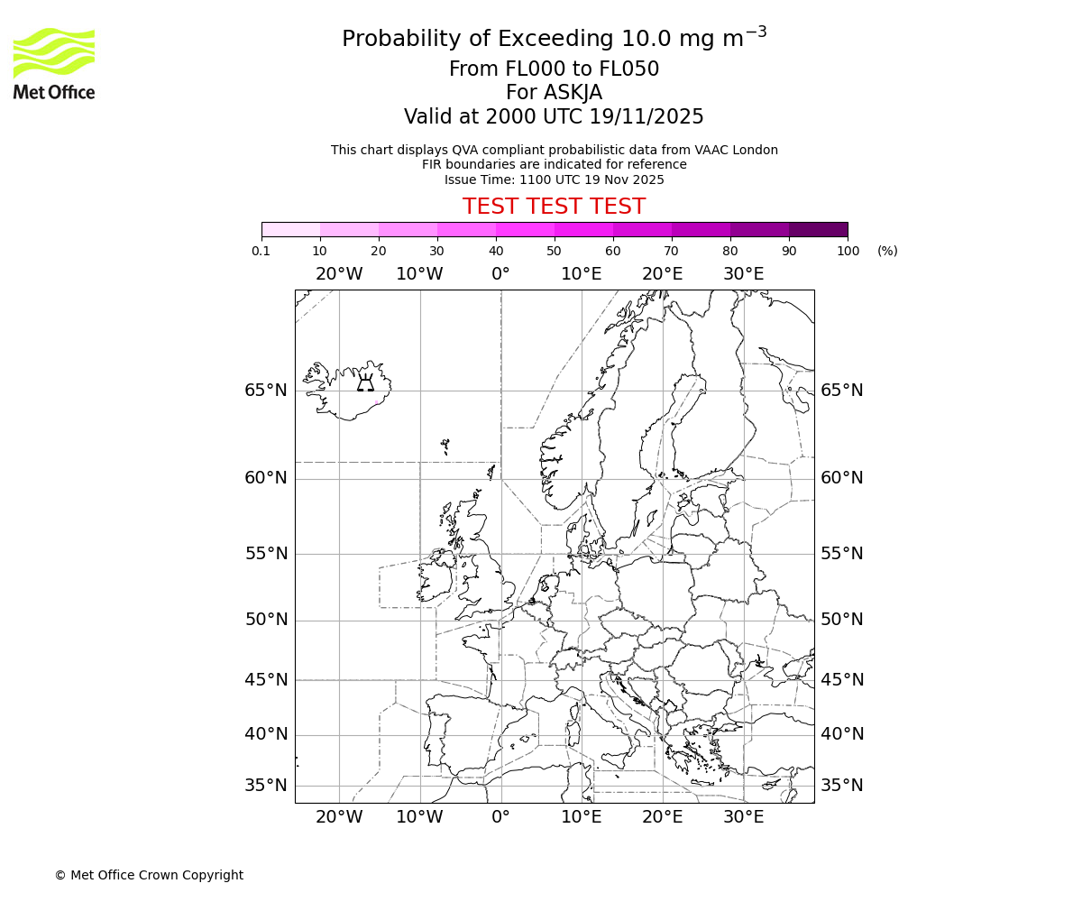 In accordance with ICAO Annex 3, Amendment 82 VAAC London will provide operational QVA forecasts from 27 November 2025 and these will be made available via a VAAC London QVA API information service. These charts are currently provided for test and evaluation purposes (not for operational use) until the introduction of the operational service.