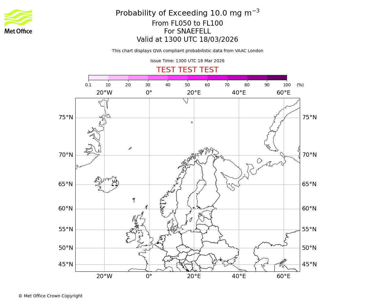 Quantitative Volcanic Ash charts (QVA) are produced in accordance with International Civil Aviation Organization (ICAO) Annex 3 requirements and are provided as well as the London Volcanic Ash Advisory Graphics (VAG) and Advisories (VAA). The lowest QVA threshold (0.2 mg/m³) matches to the areas depicted in the VAA and VAG. Both expected ash concentration and probabilistic forecast information is provided in the chart viewer below for eruptions occurring in the London Volcanic Ash Advisory Centre (VAAC) area of responsibility.