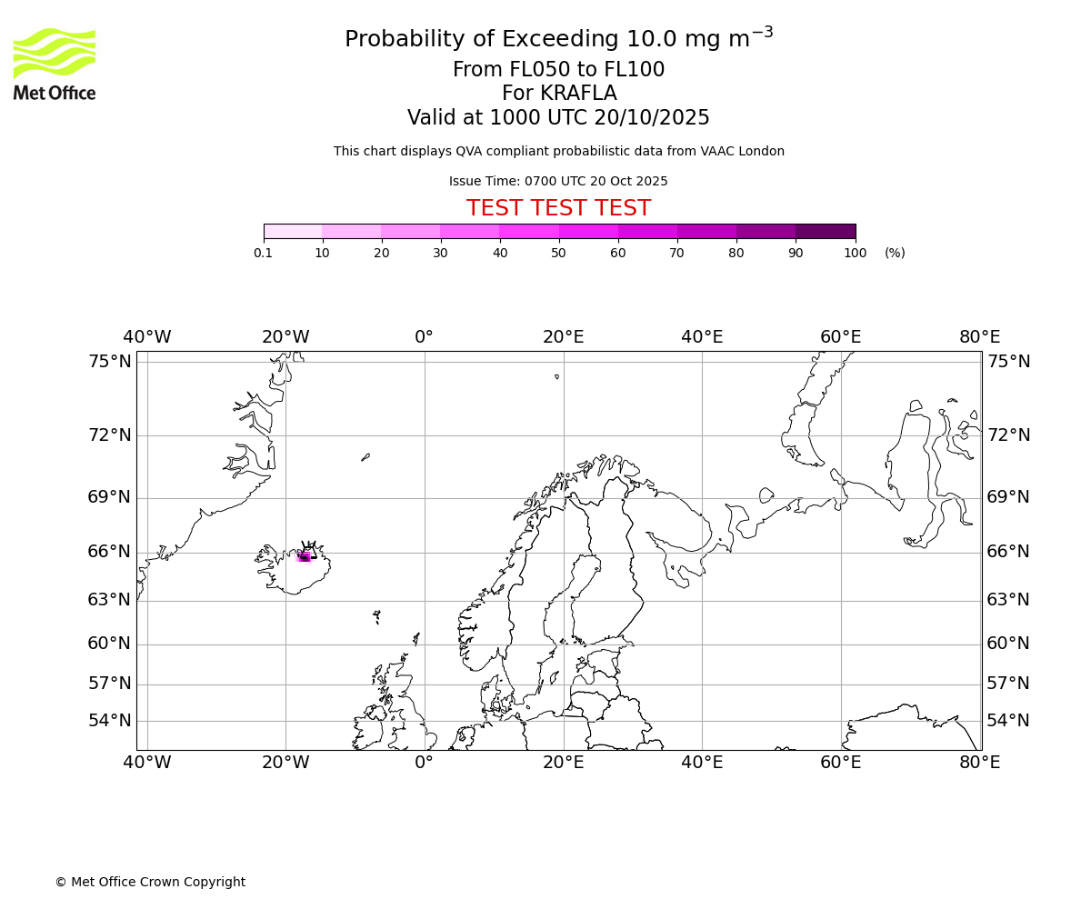 In accordance with ICAO Annex 3, Amendment 82 VAAC London will provide operational QVA forecasts from 27 November 2025 and these will be made available via a VAAC London QVA API information service. These charts are currently provided for test and evaluation purposes (not for operational use) until the introduction of the operational service.
