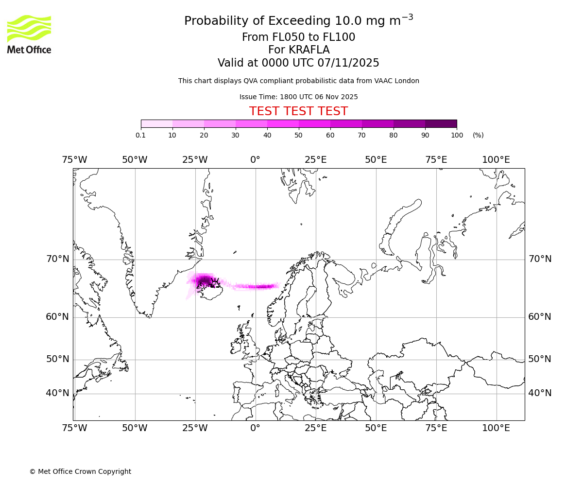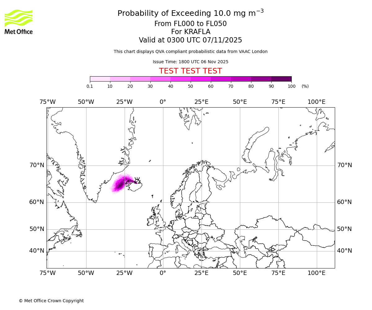 In accordance with ICAO Annex 3, Amendment 82 VAAC London will provide operational QVA forecasts from 27 November 2025 and these will be made available via a VAAC London QVA API information service. These charts are currently provided for test and evaluation purposes (not for operational use) until the introduction of the operational service.