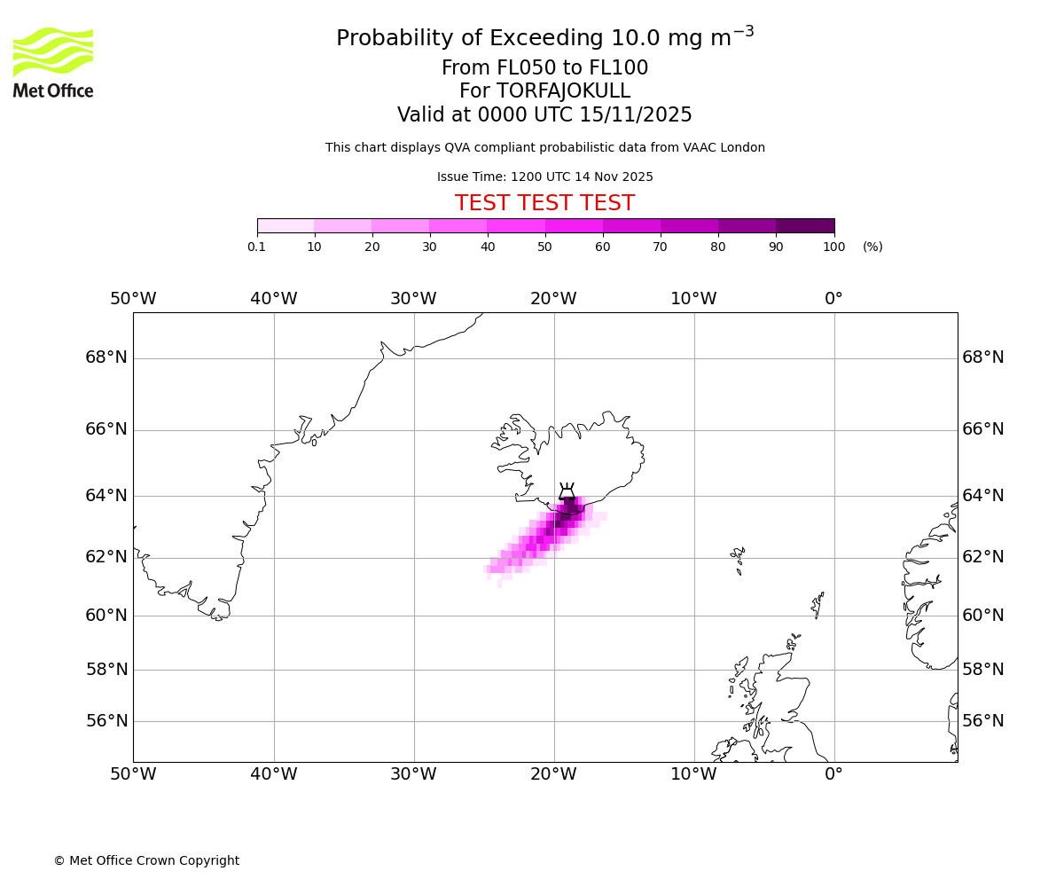 In accordance with ICAO Annex 3, Amendment 82 VAAC London will provide operational QVA forecasts from 27 November 2025 and these will be made available via a VAAC London QVA API information service. These charts are currently provided for test and evaluation purposes (not for operational use) until the introduction of the operational service.