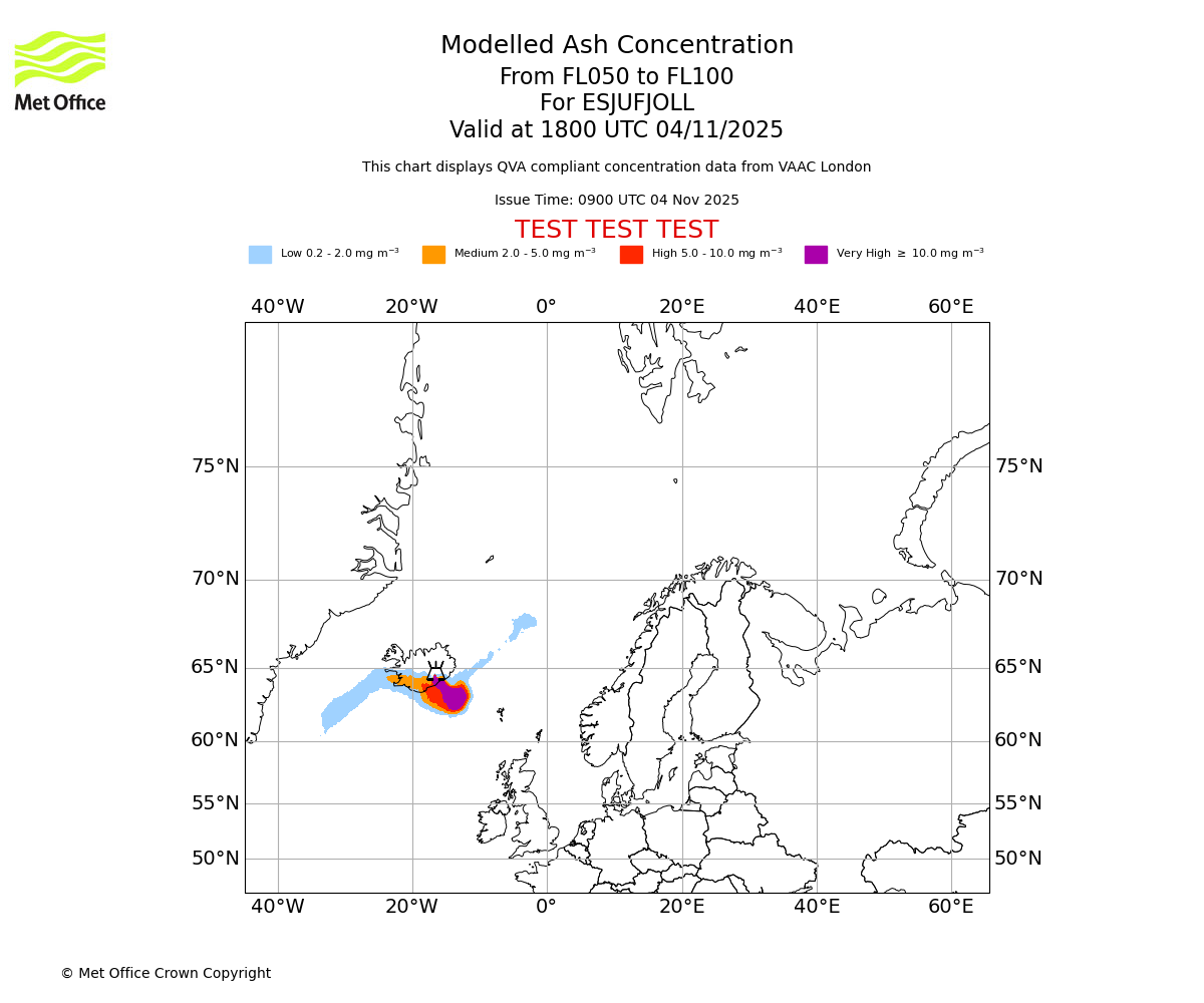 In accordance with ICAO Annex 3, Amendment 82 VAAC London will provide operational QVA forecasts from 27 November 2025 and these will be made available via a VAAC London QVA API information service. These charts are currently provided for test and evaluation purposes (not for operational use) until the introduction of the operational service.