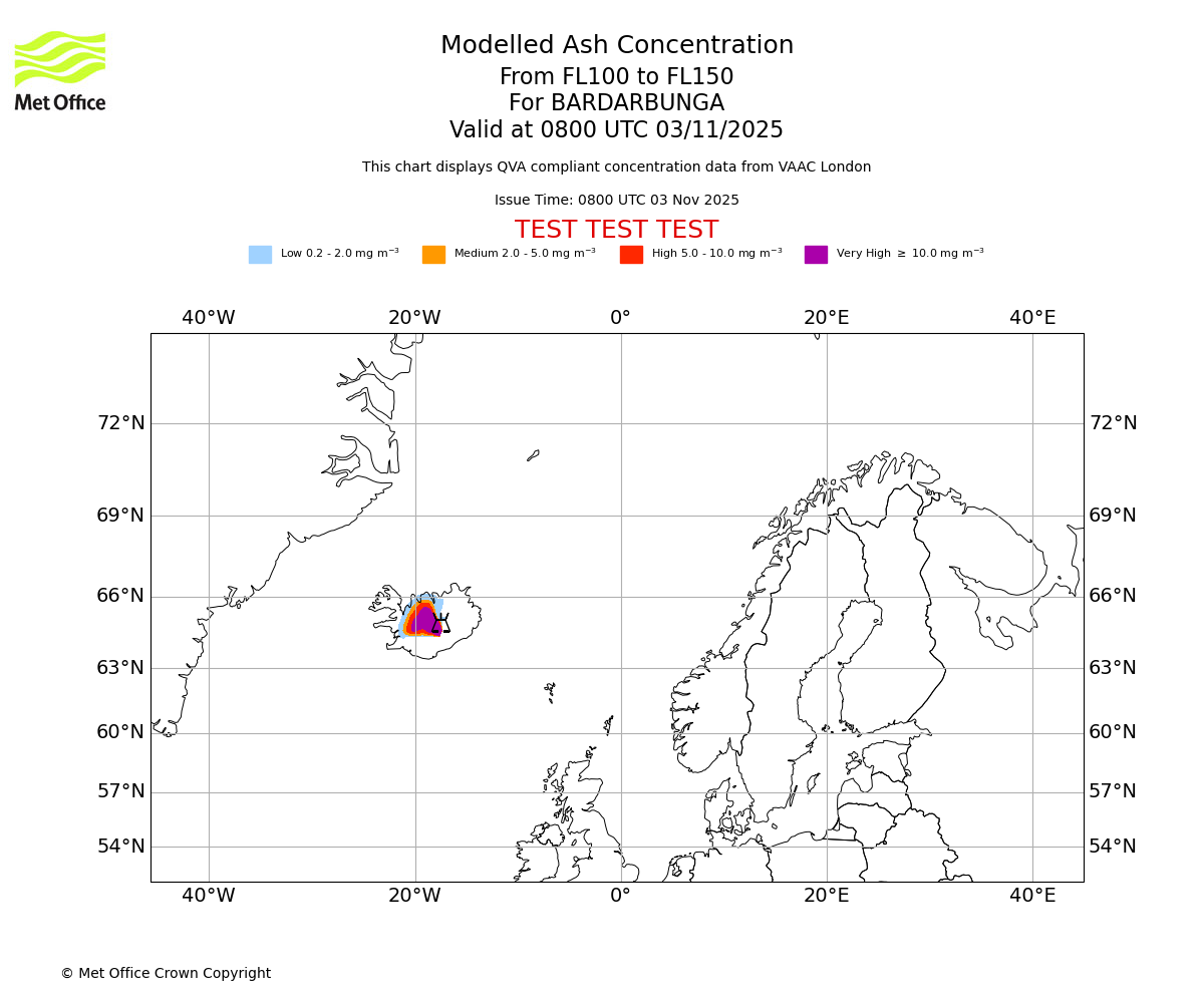 In accordance with ICAO Annex 3, Amendment 82 VAAC London will provide operational QVA forecasts from 27 November 2025 and these will be made available via a VAAC London QVA API information service. These charts are currently provided for test and evaluation purposes (not for operational use) until the introduction of the operational service.