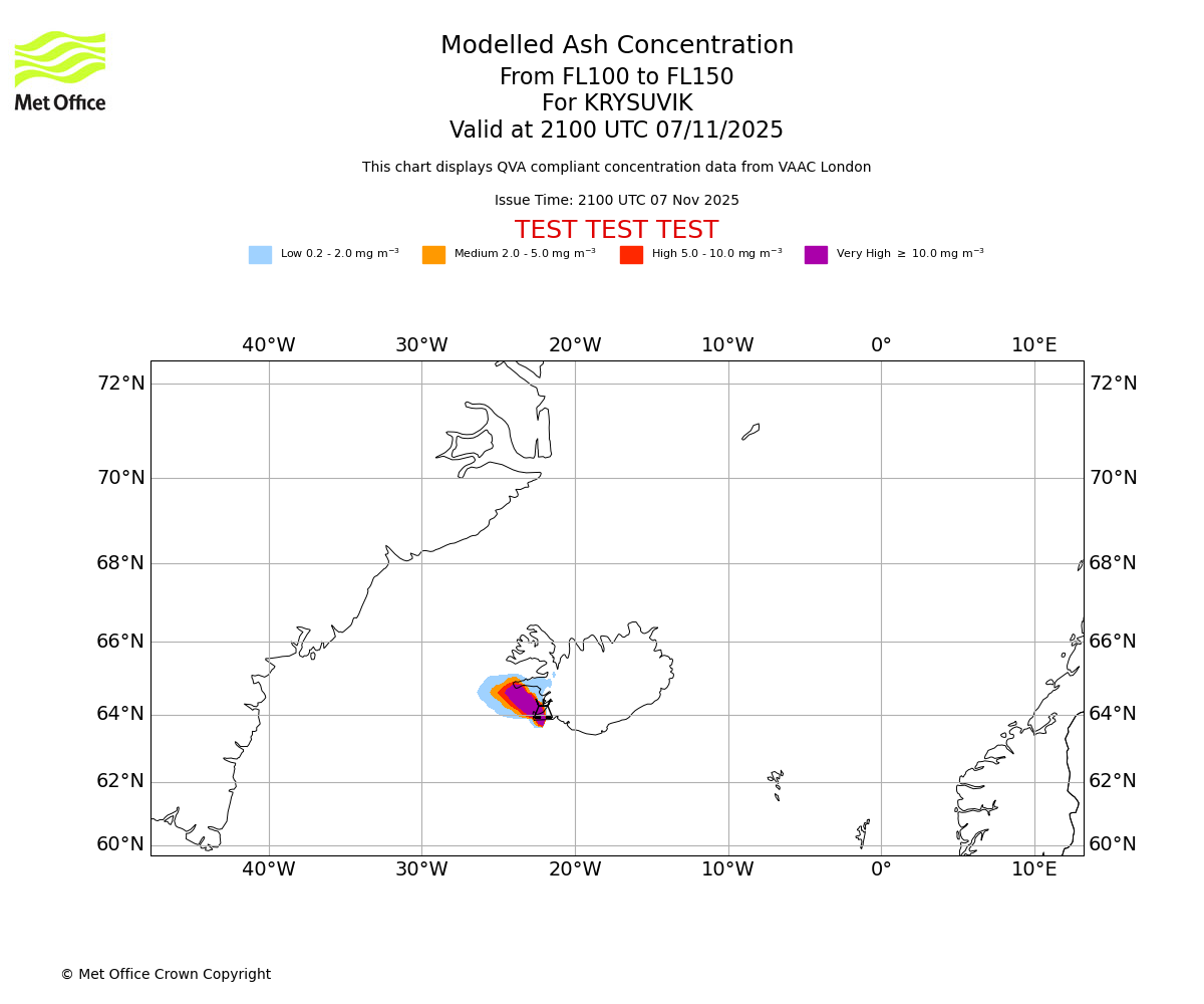 In accordance with ICAO Annex 3, Amendment 82 VAAC London will provide operational QVA forecasts from 27 November 2025 and these will be made available via a VAAC London QVA API information service. These charts are currently provided for test and evaluation purposes (not for operational use) until the introduction of the operational service.