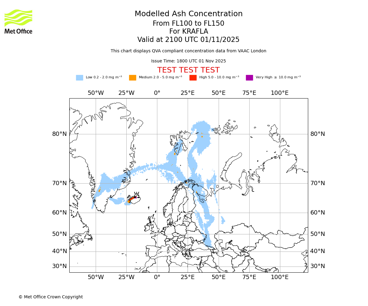 In accordance with ICAO Annex 3, Amendment 82 VAAC London will provide operational QVA forecasts from 27 November 2025 and these will be made available via a VAAC London QVA API information service. These charts are currently provided for test and evaluation purposes (not for operational use) until the introduction of the operational service.
