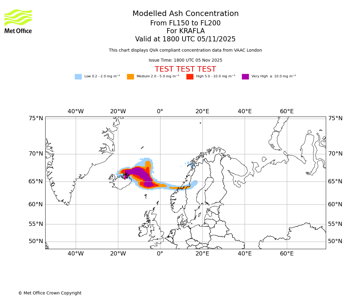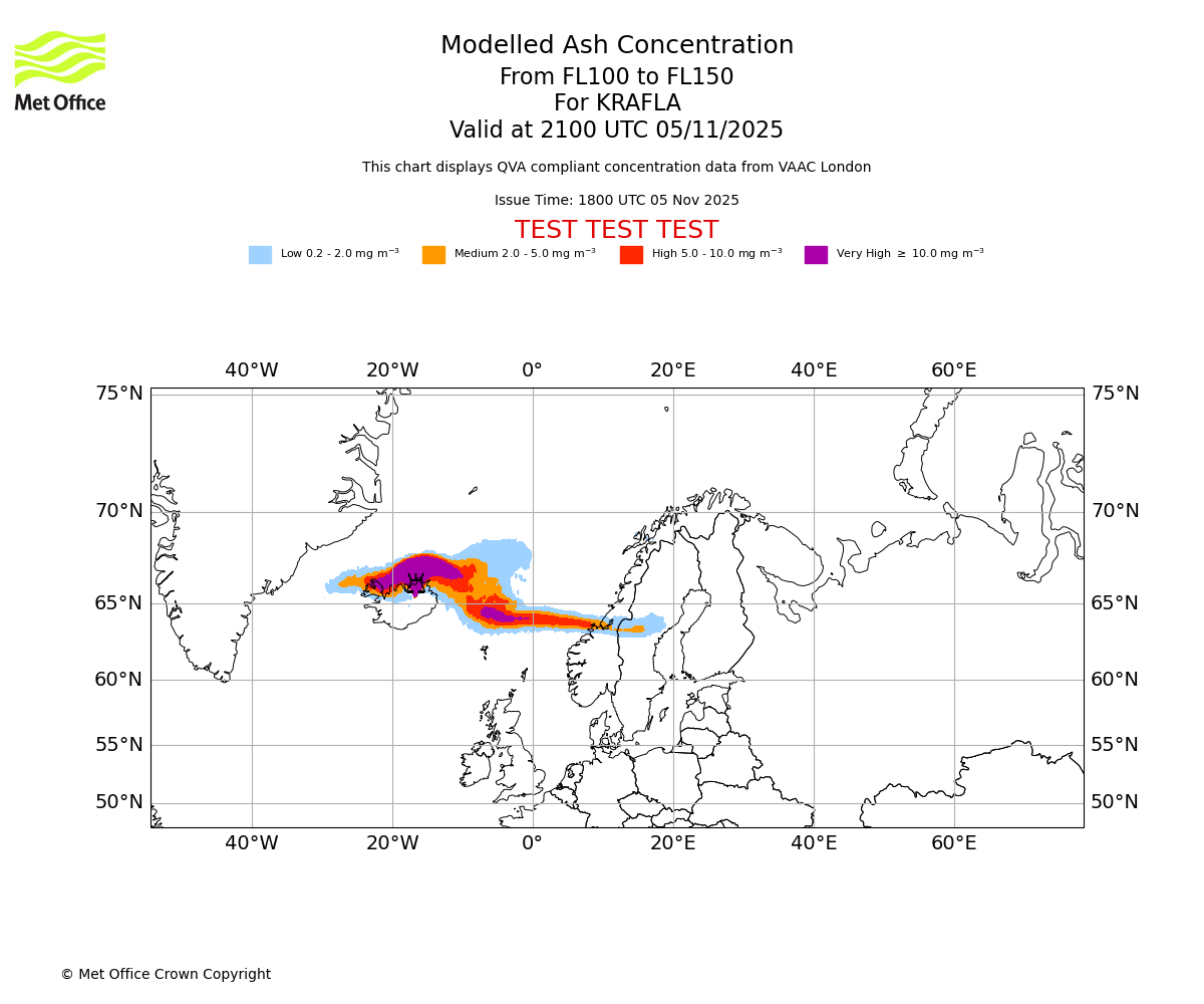 In accordance with ICAO Annex 3, Amendment 82 VAAC London will provide operational QVA forecasts from 27 November 2025 and these will be made available via a VAAC London QVA API information service. These charts are currently provided for test and evaluation purposes (not for operational use) until the introduction of the operational service.