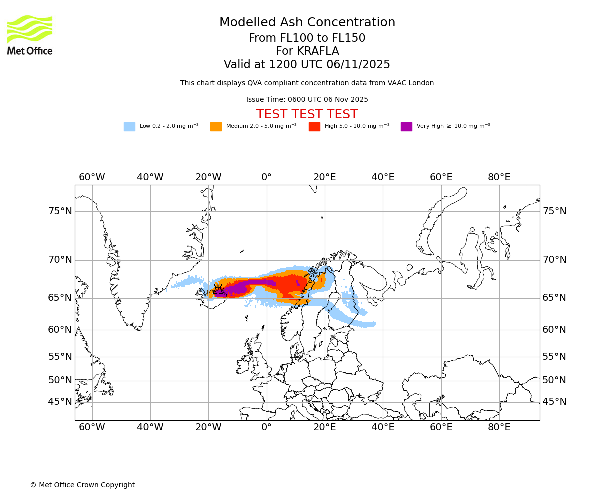 In accordance with ICAO Annex 3, Amendment 82 VAAC London will provide operational QVA forecasts from 27 November 2025 and these will be made available via a VAAC London QVA API information service. These charts are currently provided for test and evaluation purposes (not for operational use) until the introduction of the operational service.