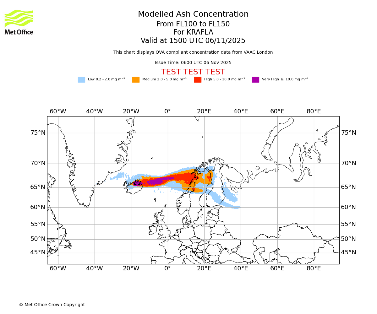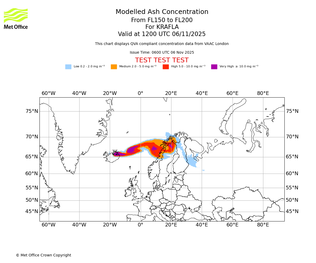 In accordance with ICAO Annex 3, Amendment 82 VAAC London will provide operational QVA forecasts from 27 November 2025 and these will be made available via a VAAC London QVA API information service. These charts are currently provided for test and evaluation purposes (not for operational use) until the introduction of the operational service.