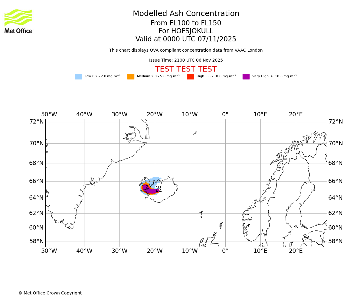 In accordance with ICAO Annex 3, Amendment 82 VAAC London will provide operational QVA forecasts from 27 November 2025 and these will be made available via a VAAC London QVA API information service. These charts are currently provided for test and evaluation purposes (not for operational use) until the introduction of the operational service.