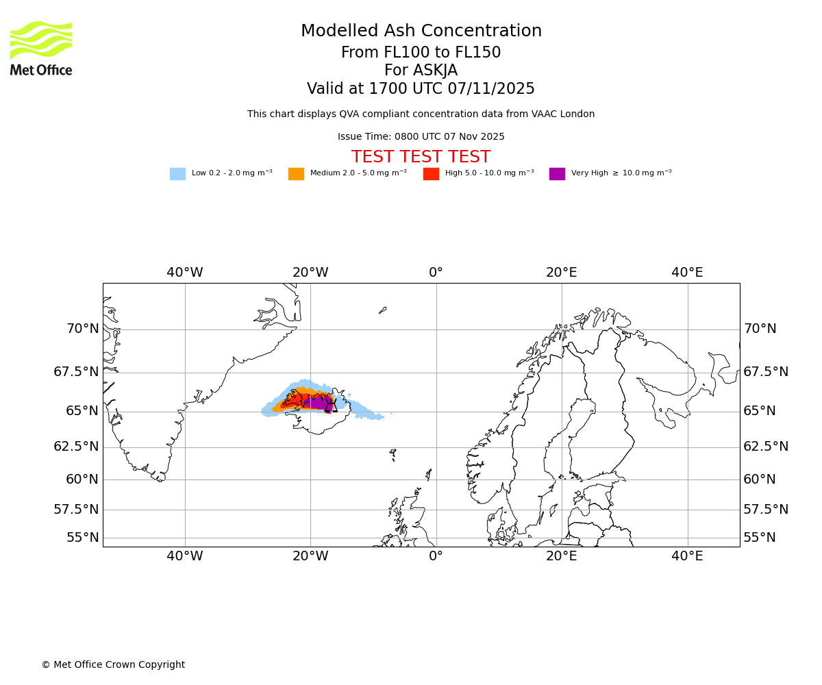 In accordance with ICAO Annex 3, Amendment 82 VAAC London will provide operational QVA forecasts from 27 November 2025 and these will be made available via a VAAC London QVA API information service. These charts are currently provided for test and evaluation purposes (not for operational use) until the introduction of the operational service.