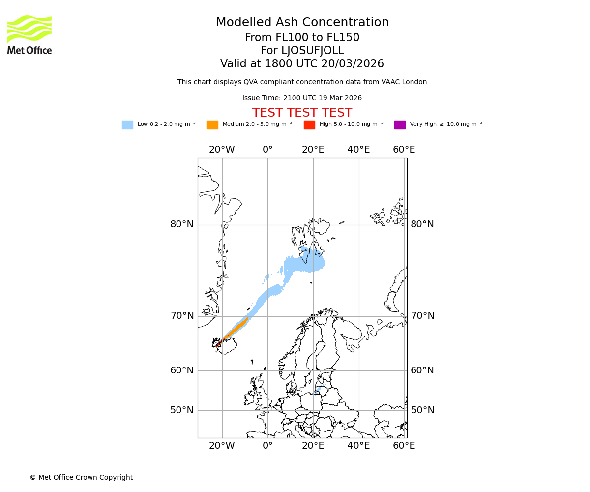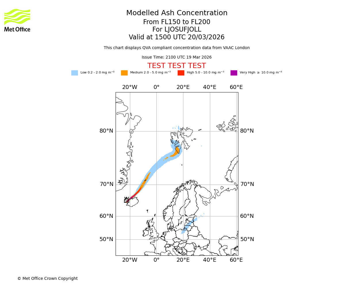 Modelled ash concentration from 000 to 200 for LJOSUFJOLL. Valid at 2100 UTC 19/03/2026