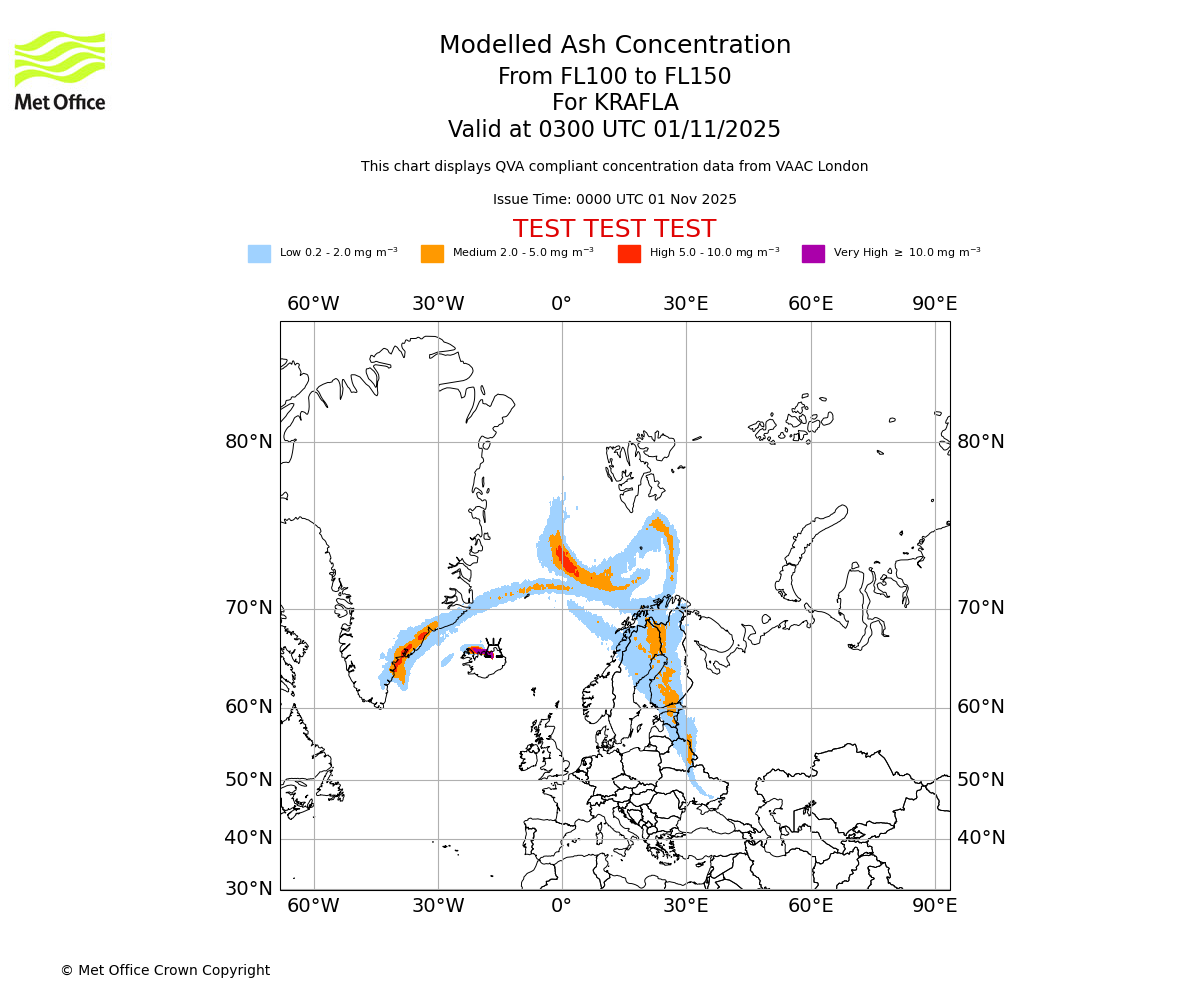 In accordance with ICAO Annex 3, Amendment 82 VAAC London will provide operational QVA forecasts from 27 November 2025 and these will be made available via a VAAC London QVA API information service. These charts are currently provided for test and evaluation purposes (not for operational use) until the introduction of the operational service.