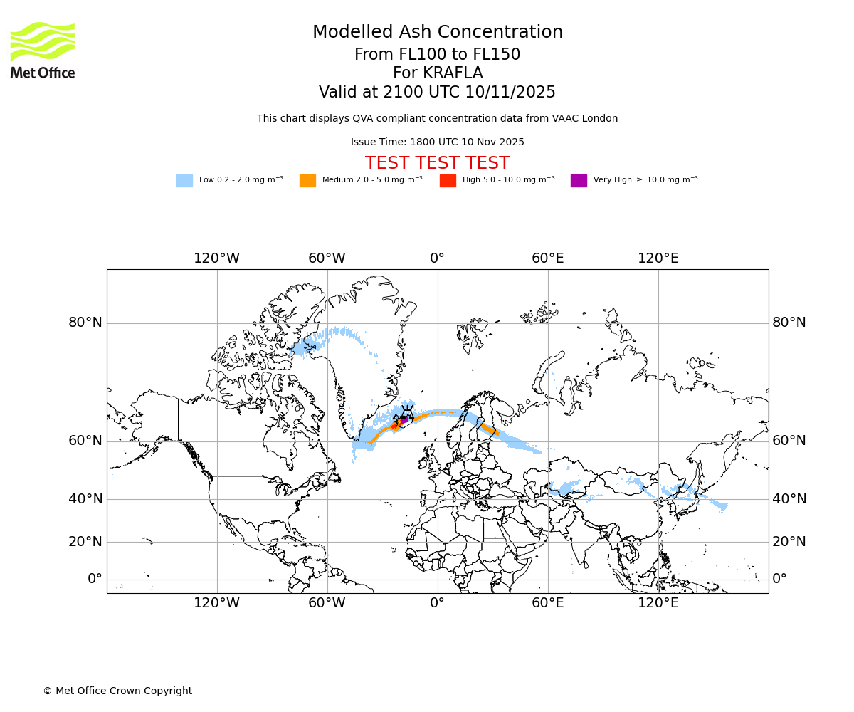 In accordance with ICAO Annex 3, Amendment 82 VAAC London will provide operational QVA forecasts from 27 November 2025 and these will be made available via a VAAC London QVA API information service. These charts are currently provided for test and evaluation purposes (not for operational use) until the introduction of the operational service.