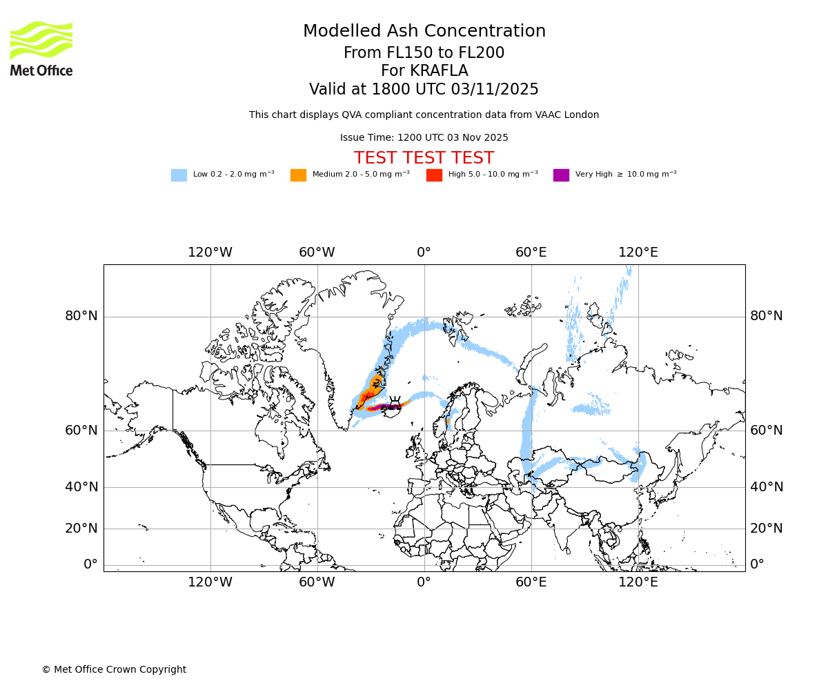 In accordance with ICAO Annex 3, Amendment 82 VAAC London will provide operational QVA forecasts from 27 November 2025 and these will be made available via a VAAC London QVA API information service. These charts are currently provided for test and evaluation purposes (not for operational use) until the introduction of the operational service.