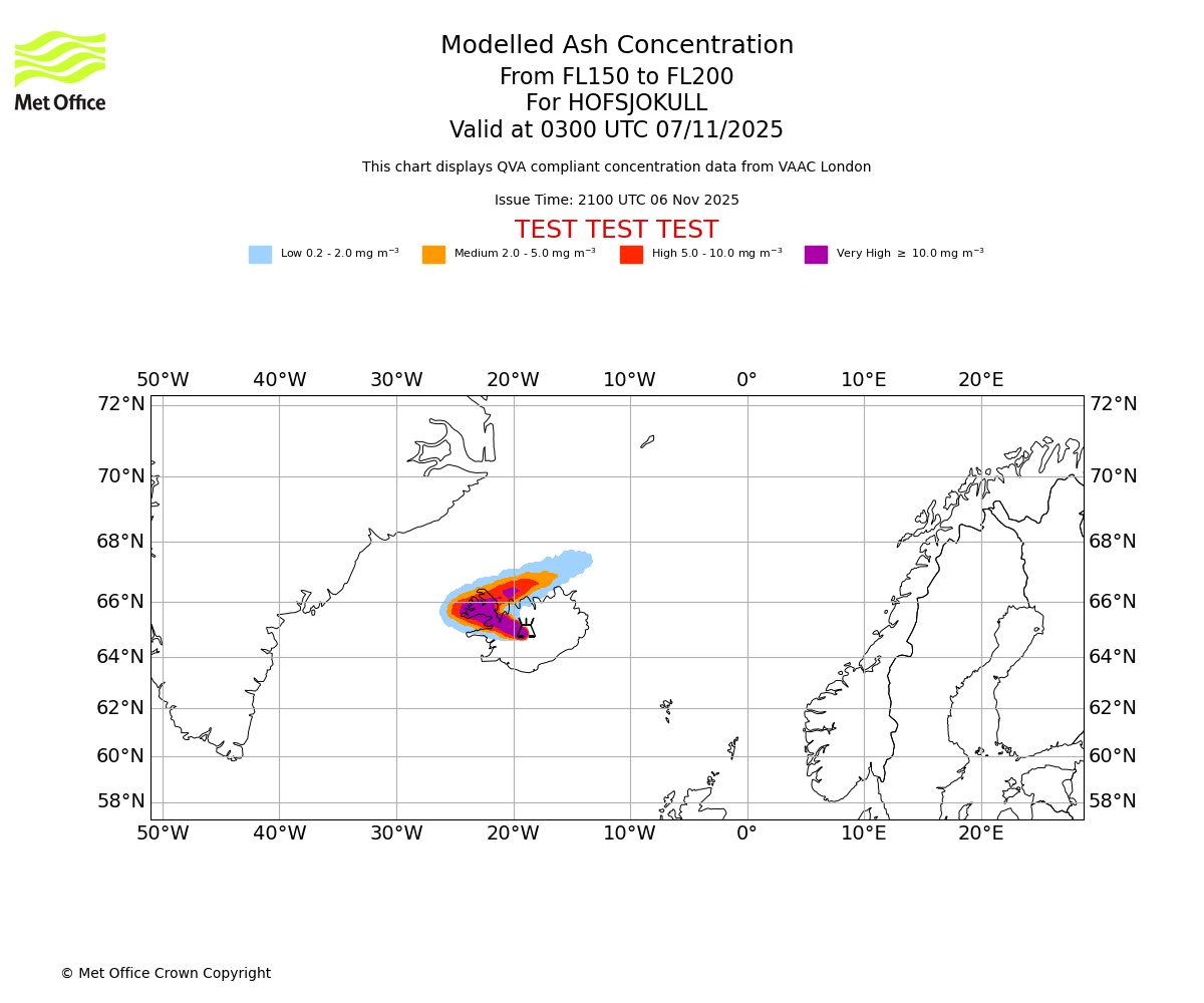 In accordance with ICAO Annex 3, Amendment 82 VAAC London will provide operational QVA forecasts from 27 November 2025 and these will be made available via a VAAC London QVA API information service. These charts are currently provided for test and evaluation purposes (not for operational use) until the introduction of the operational service.