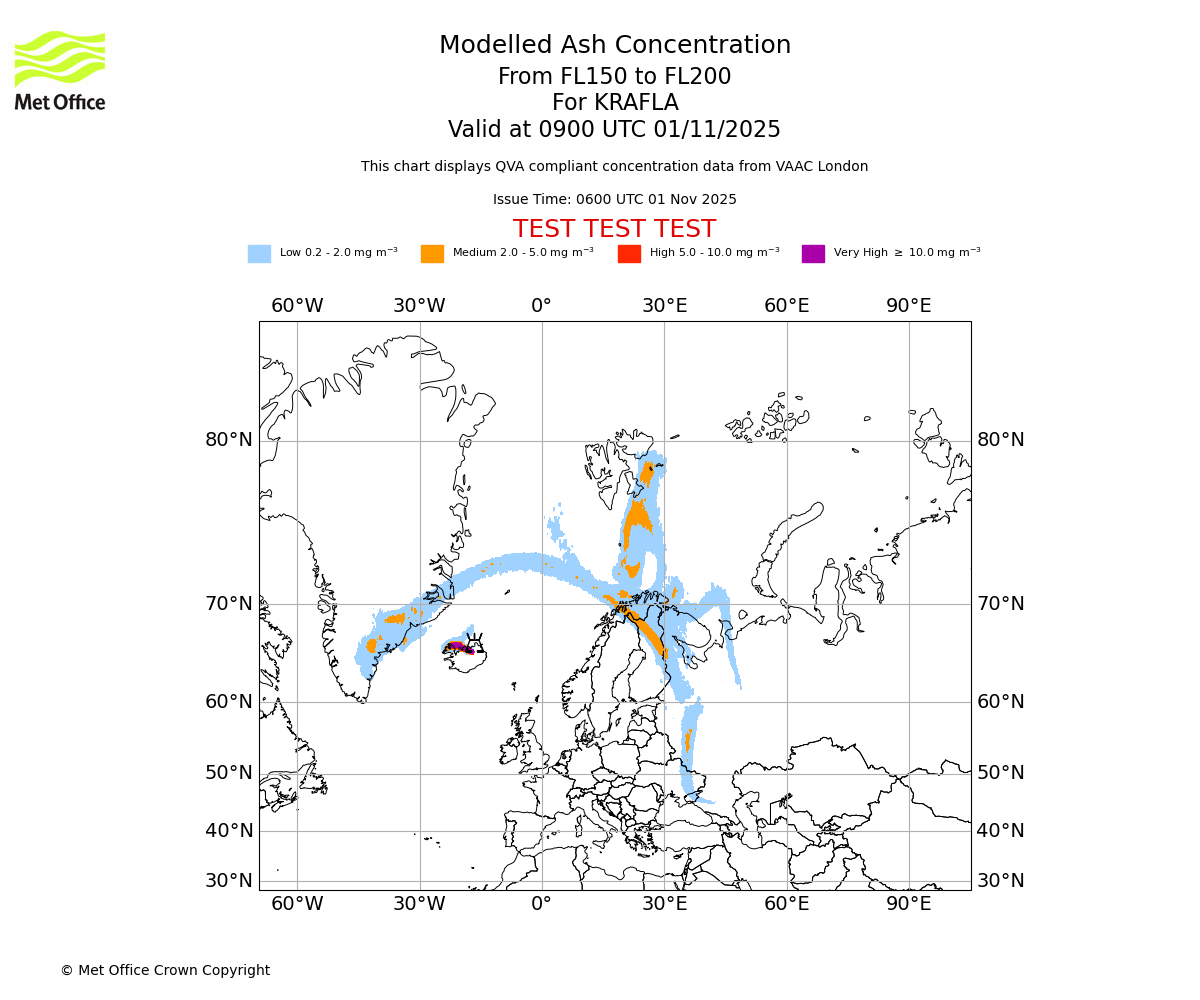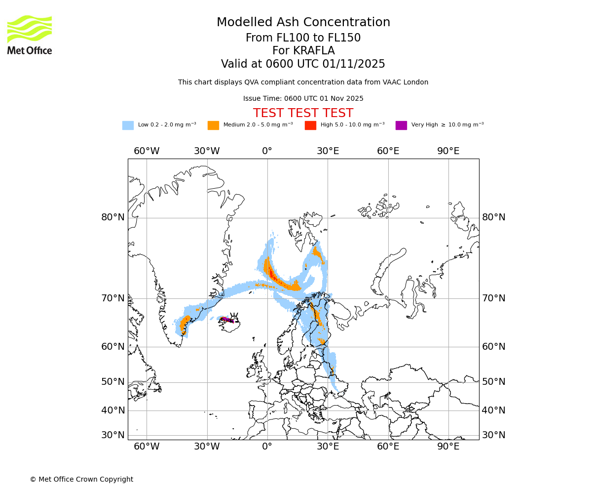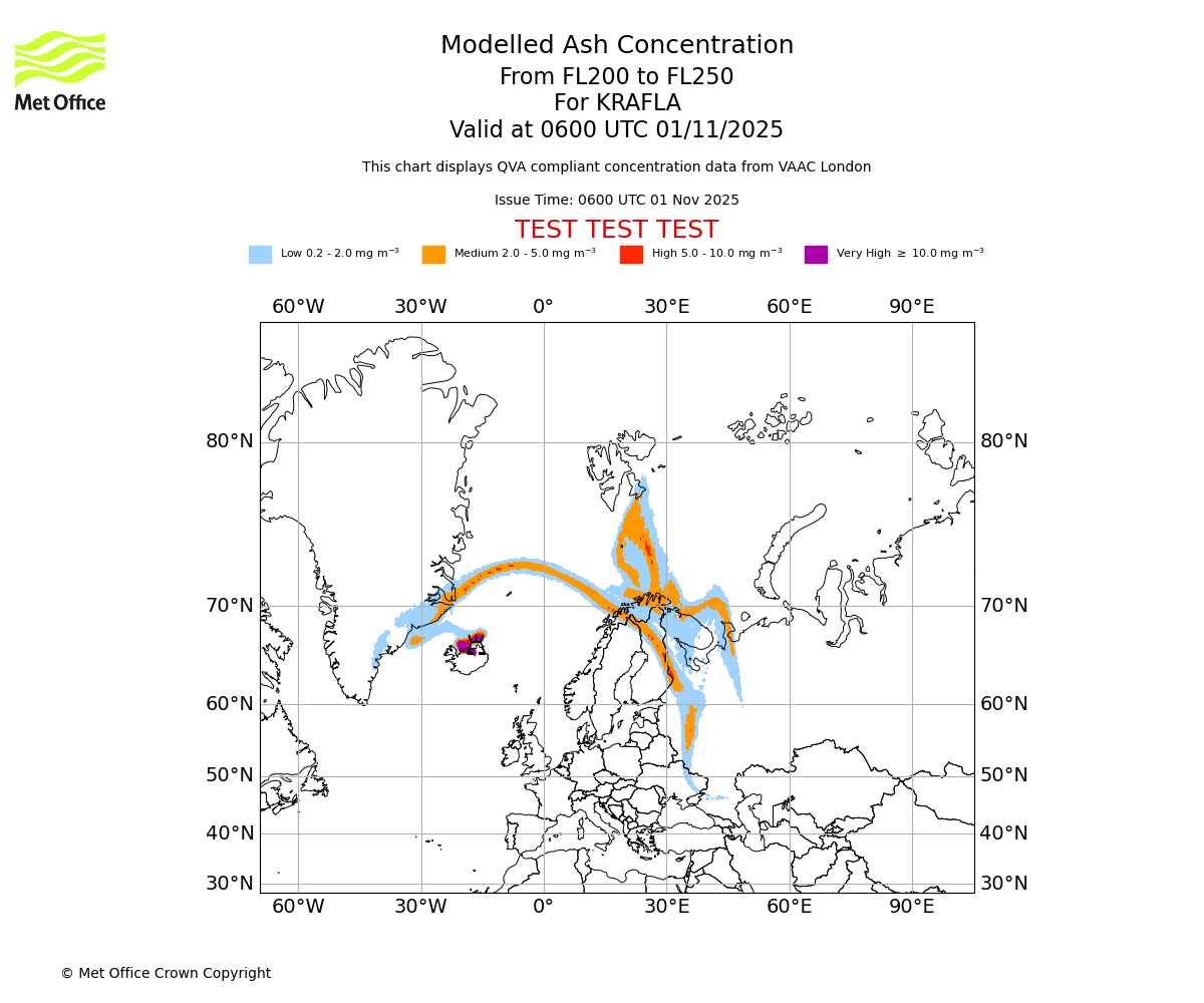 In accordance with ICAO Annex 3, Amendment 82 VAAC London will provide operational QVA forecasts from 27 November 2025 and these will be made available via a VAAC London QVA API information service. These charts are currently provided for test and evaluation purposes (not for operational use) until the introduction of the operational service.