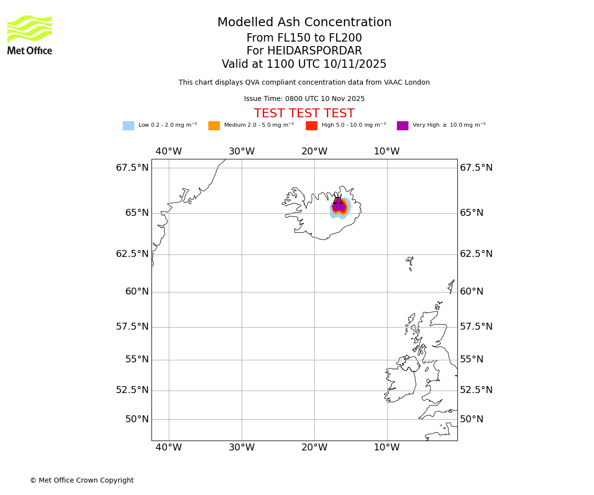 In accordance with ICAO Annex 3, Amendment 82 VAAC London will provide operational QVA forecasts from 27 November 2025 and these will be made available via a VAAC London QVA API information service. These charts are currently provided for test and evaluation purposes (not for operational use) until the introduction of the operational service.
