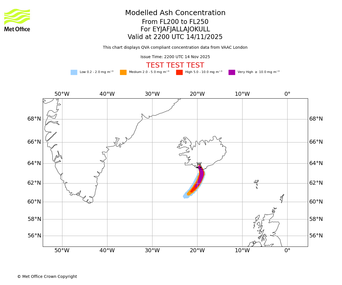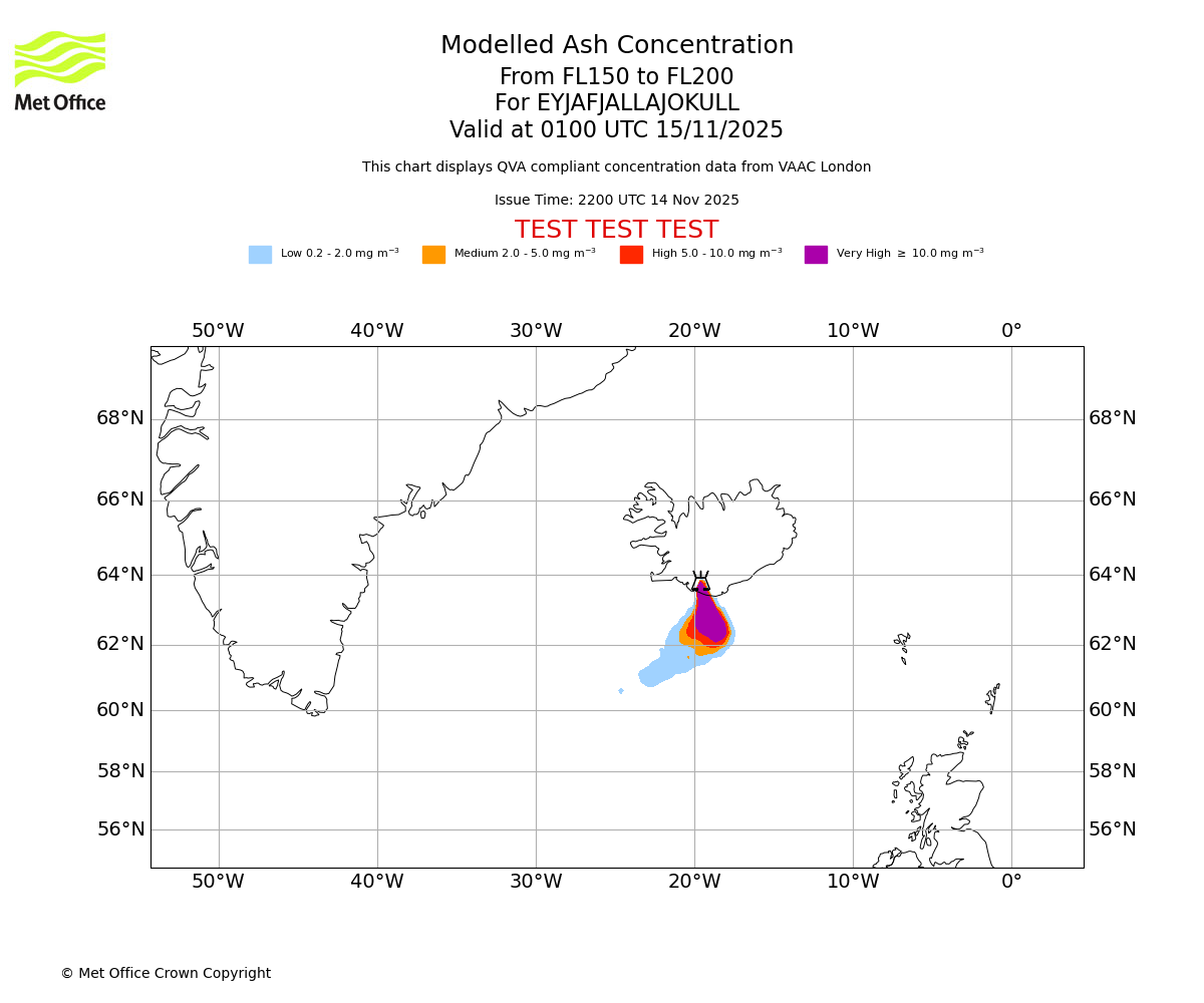 In accordance with ICAO Annex 3, Amendment 82 VAAC London will provide operational QVA forecasts from 27 November 2025 and these will be made available via a VAAC London QVA API information service. These charts are currently provided for test and evaluation purposes (not for operational use) until the introduction of the operational service.