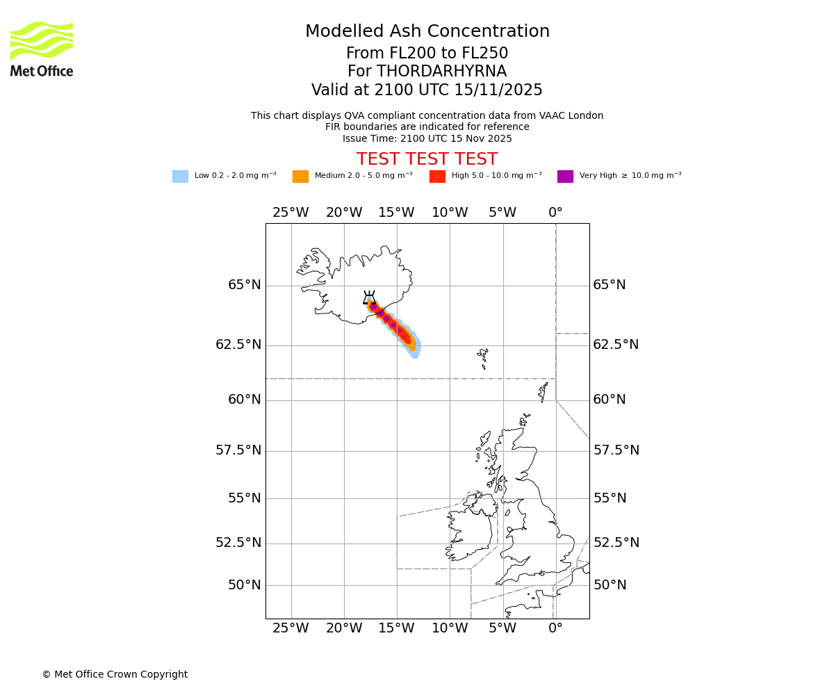In accordance with ICAO Annex 3, Amendment 82 VAAC London will provide operational QVA forecasts from 27 November 2025 and these will be made available via a VAAC London QVA API information service. These charts are currently provided for test and evaluation purposes (not for operational use) until the introduction of the operational service.