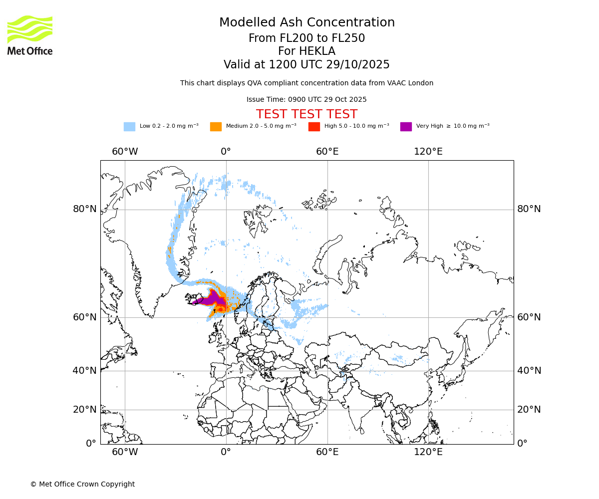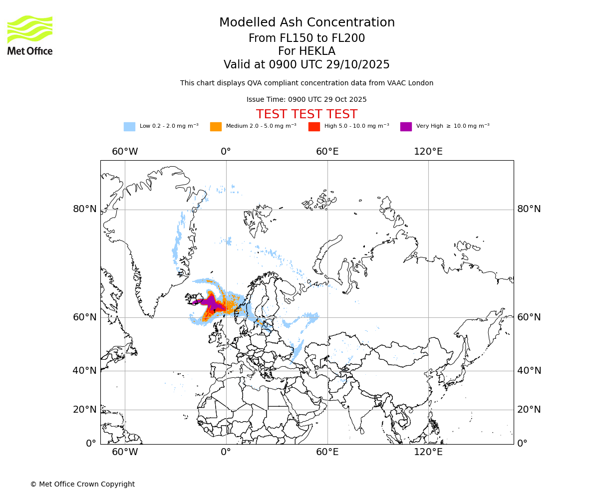 In accordance with ICAO Annex 3, Amendment 82 VAAC London will provide operational QVA forecasts from 27 November 2025 and these will be made available via a VAAC London QVA API information service. These charts are currently provided for test and evaluation purposes (not for operational use) until the introduction of the operational service.