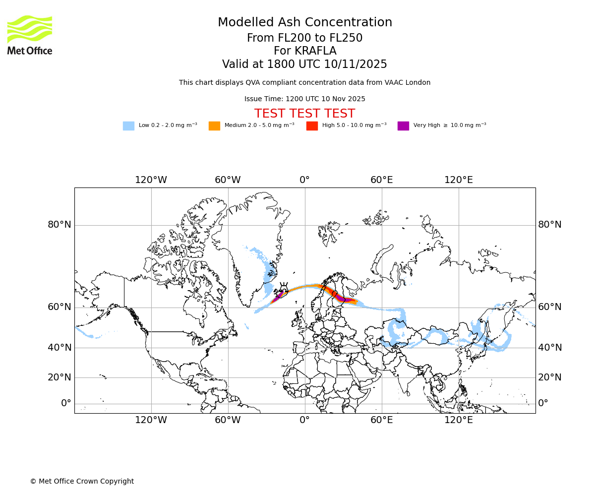 In accordance with ICAO Annex 3, Amendment 82 VAAC London will provide operational QVA forecasts from 27 November 2025 and these will be made available via a VAAC London QVA API information service. These charts are currently provided for test and evaluation purposes (not for operational use) until the introduction of the operational service.