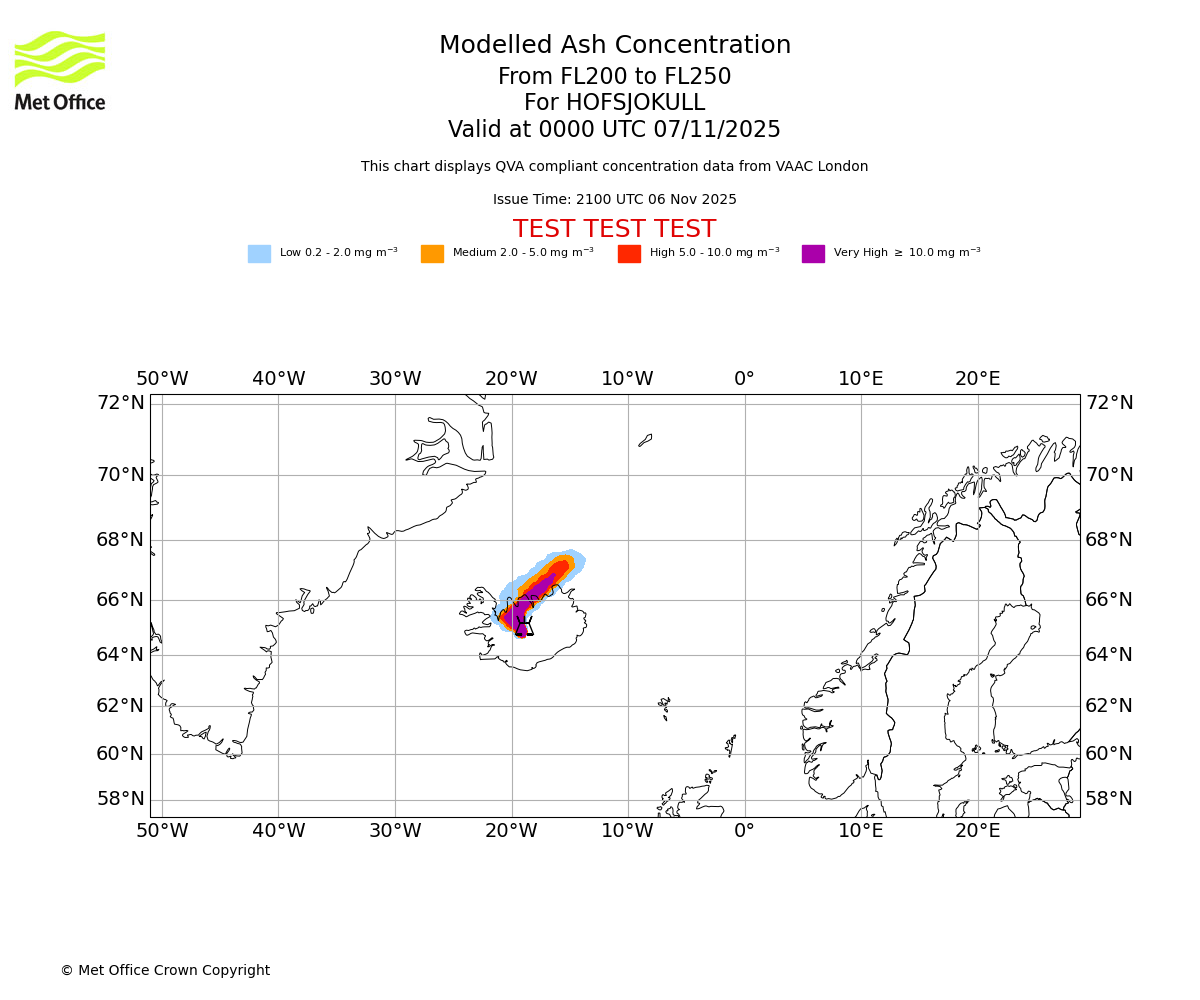 In accordance with ICAO Annex 3, Amendment 82 VAAC London will provide operational QVA forecasts from 27 November 2025 and these will be made available via a VAAC London QVA API information service. These charts are currently provided for test and evaluation purposes (not for operational use) until the introduction of the operational service.