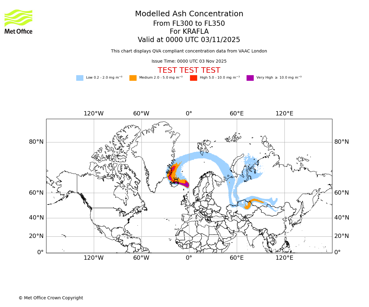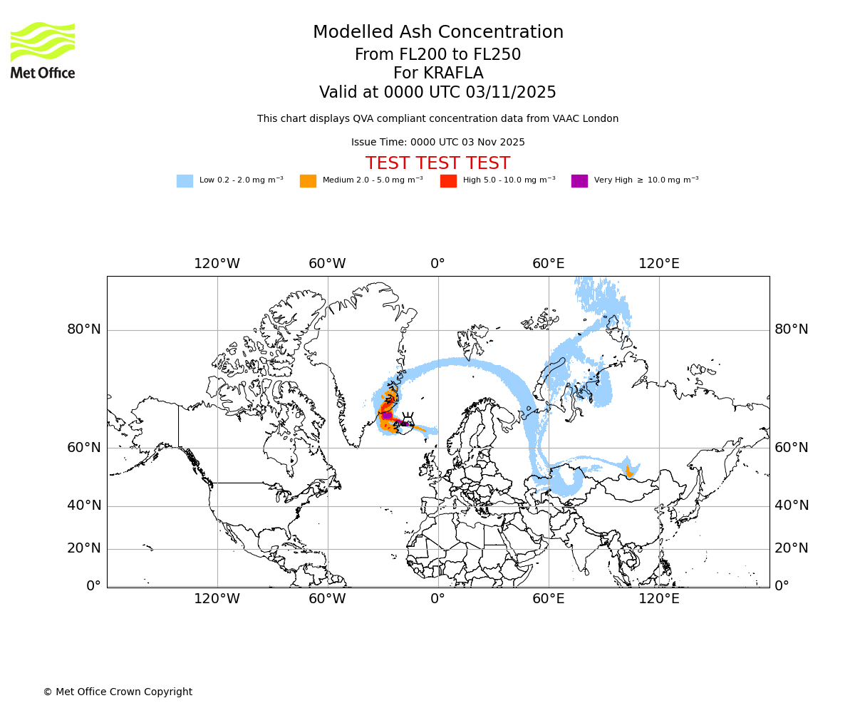 In accordance with ICAO Annex 3, Amendment 82 VAAC London will provide operational QVA forecasts from 27 November 2025 and these will be made available via a VAAC London QVA API information service. These charts are currently provided for test and evaluation purposes (not for operational use) until the introduction of the operational service.