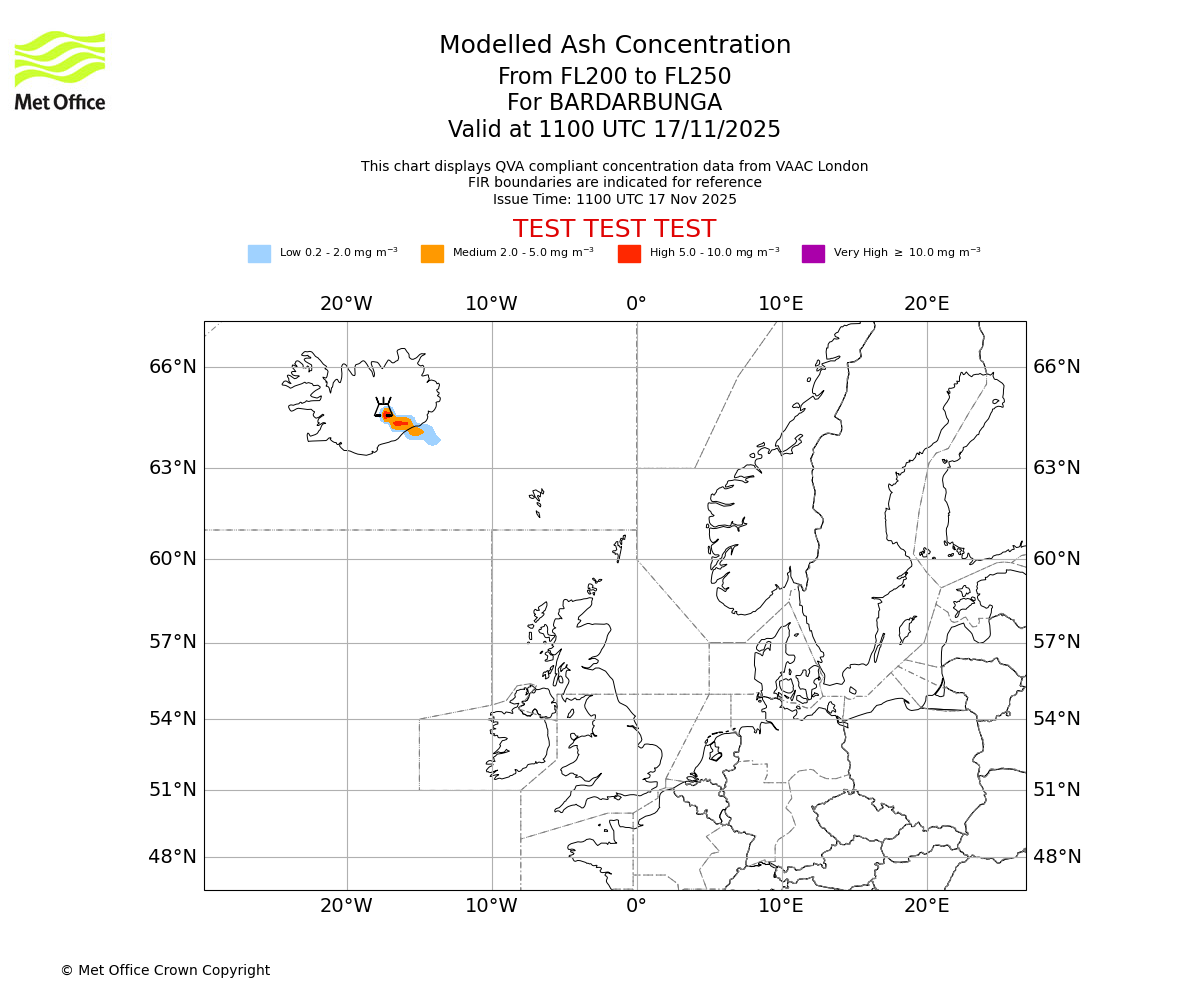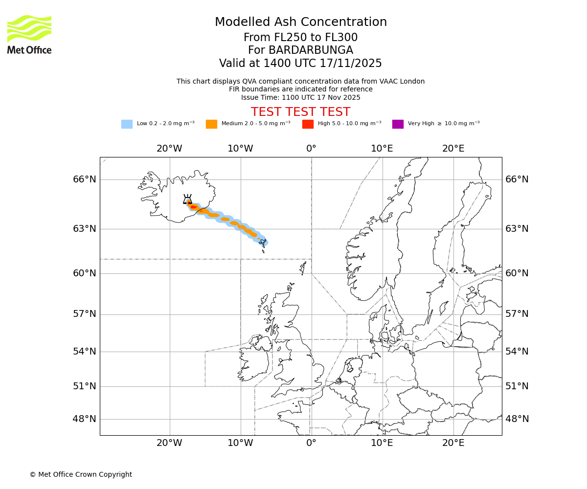 In accordance with ICAO Annex 3, Amendment 82 VAAC London will provide operational QVA forecasts from 27 November 2025 and these will be made available via a VAAC London QVA API information service. These charts are currently provided for test and evaluation purposes (not for operational use) until the introduction of the operational service.