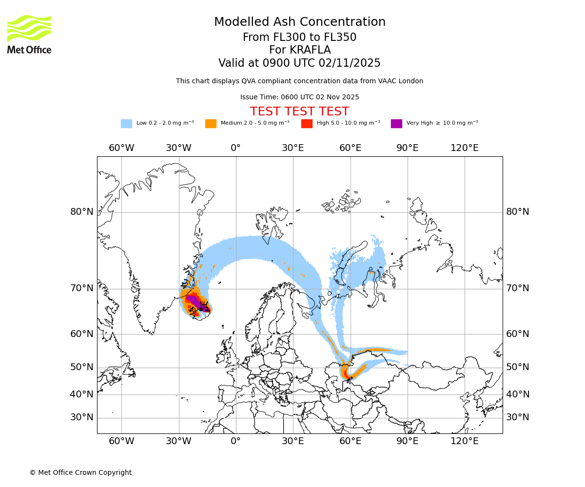 In accordance with ICAO Annex 3, Amendment 82 VAAC London will provide operational QVA forecasts from 27 November 2025 and these will be made available via a VAAC London QVA API information service. These charts are currently provided for test and evaluation purposes (not for operational use) until the introduction of the operational service.