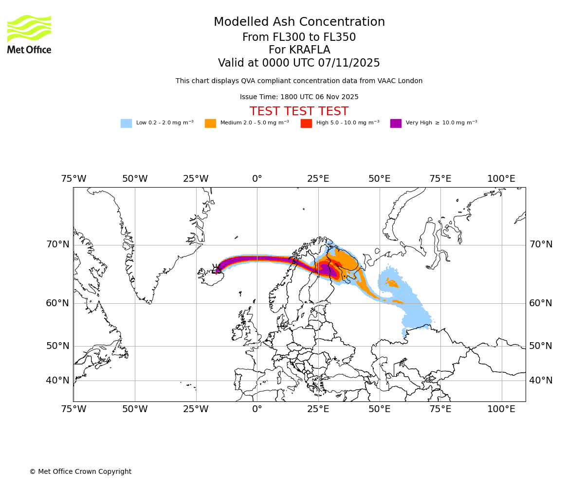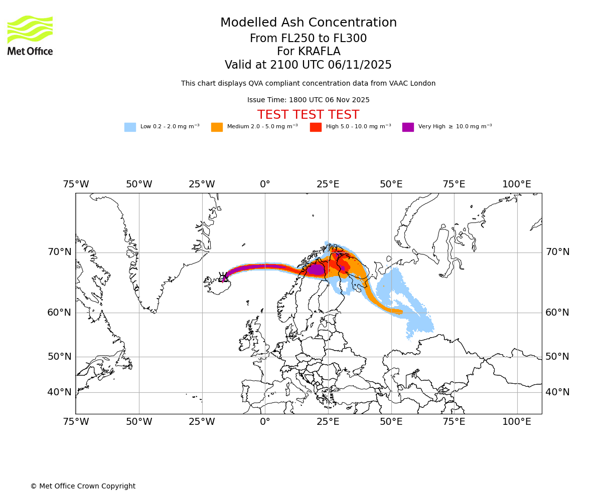 In accordance with ICAO Annex 3, Amendment 82 VAAC London will provide operational QVA forecasts from 27 November 2025 and these will be made available via a VAAC London QVA API information service. These charts are currently provided for test and evaluation purposes (not for operational use) until the introduction of the operational service.