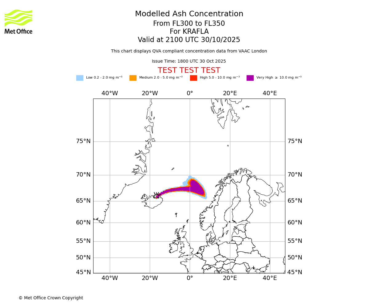 In accordance with ICAO Annex 3, Amendment 82 VAAC London will provide operational QVA forecasts from 27 November 2025 and these will be made available via a VAAC London QVA API information service. These charts are currently provided for test and evaluation purposes (not for operational use) until the introduction of the operational service.