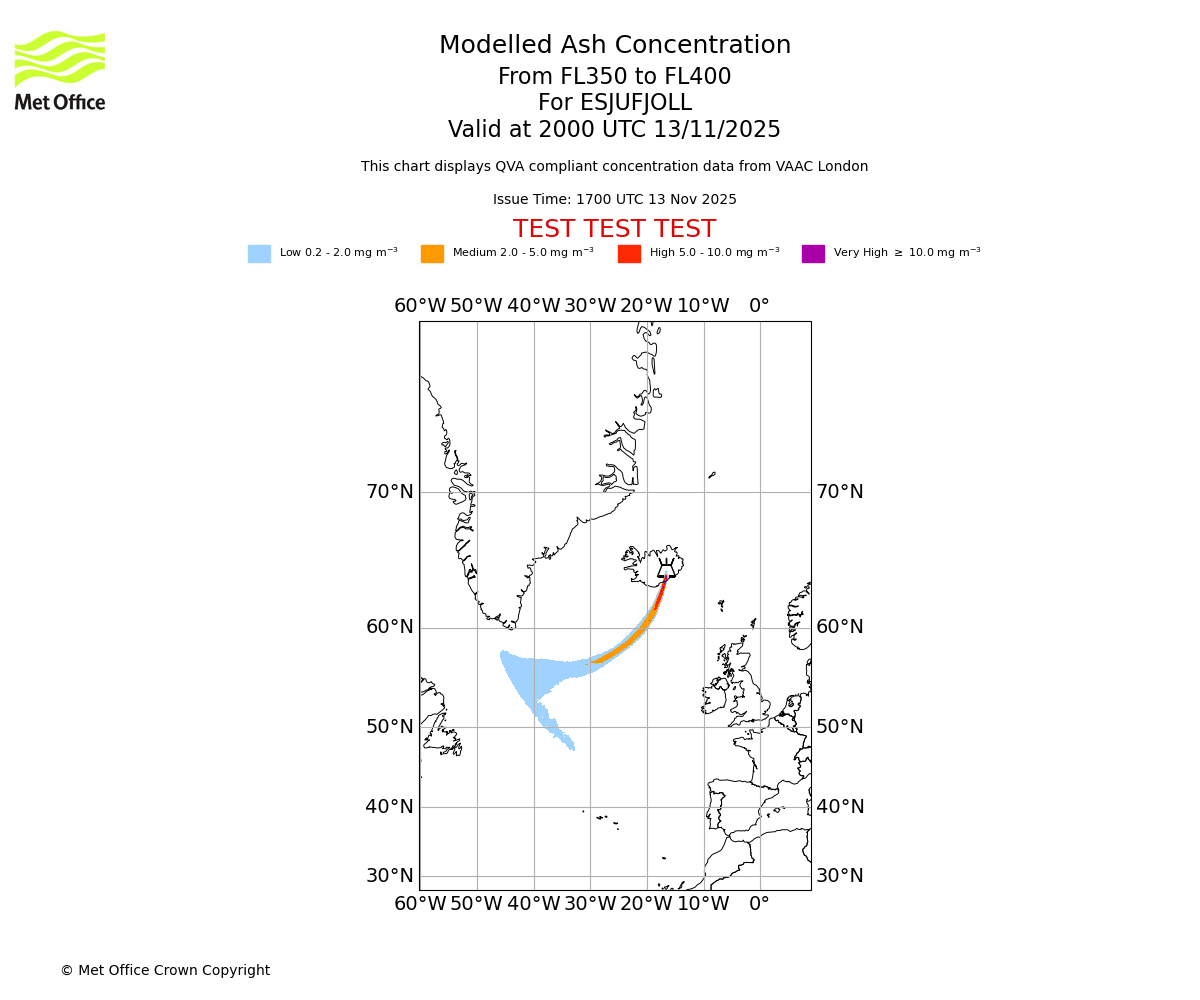 In accordance with ICAO Annex 3, Amendment 82 VAAC London will provide operational QVA forecasts from 27 November 2025 and these will be made available via a VAAC London QVA API information service. These charts are currently provided for test and evaluation purposes (not for operational use) until the introduction of the operational service.