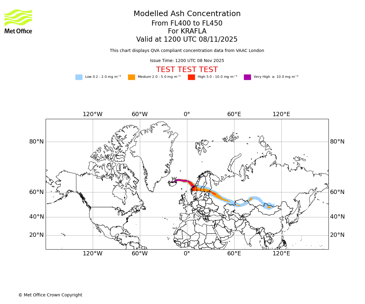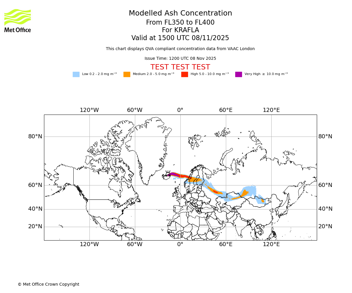 In accordance with ICAO Annex 3, Amendment 82 VAAC London will provide operational QVA forecasts from 27 November 2025 and these will be made available via a VAAC London QVA API information service. These charts are currently provided for test and evaluation purposes (not for operational use) until the introduction of the operational service.