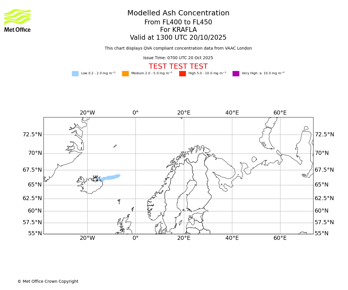 In accordance with ICAO Annex 3, Amendment 82 VAAC London will provide operational QVA forecasts from 27 November 2025 and these will be made available via a VAAC London QVA API information service. These charts are currently provided for test and evaluation purposes (not for operational use) until the introduction of the operational service.